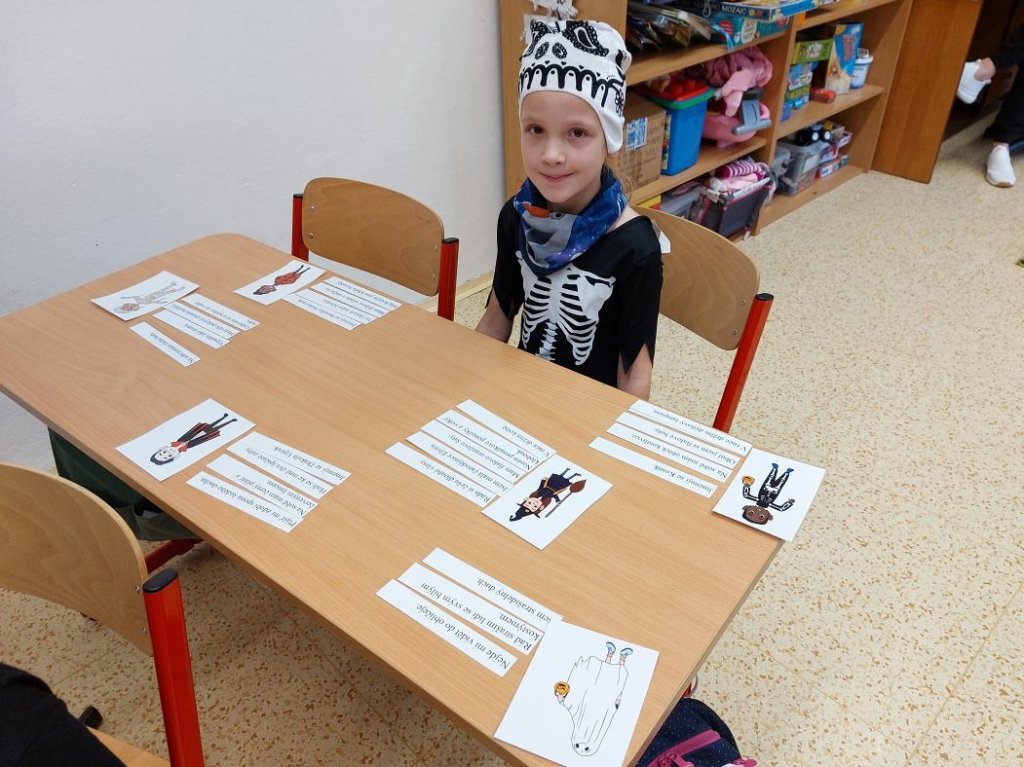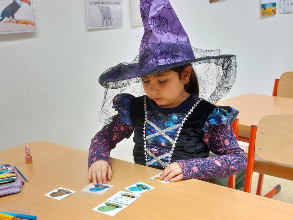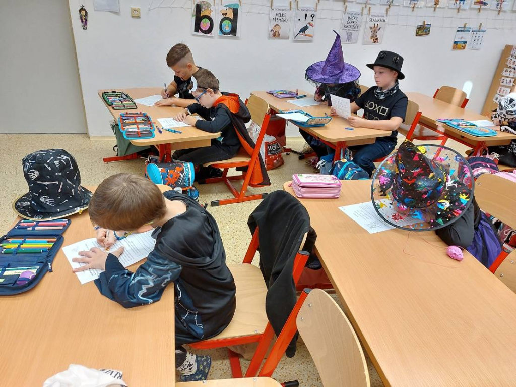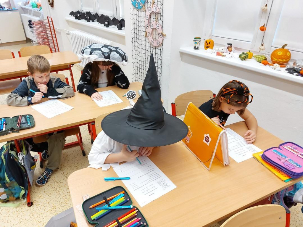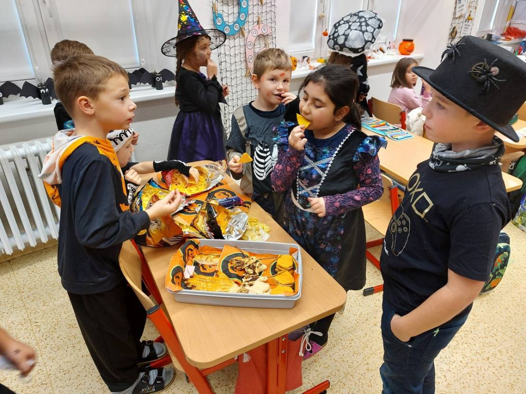 Konec října patří již tradičně svátku Halloween. Všechny aktivity jsme tedy zaměřili na toto téma. Veselou atmosféru doplňovaly i strašidelné kostýmy a masky dětí. Na závěrečné halloweenské párty nechybělo ani občerstvení a hudba.