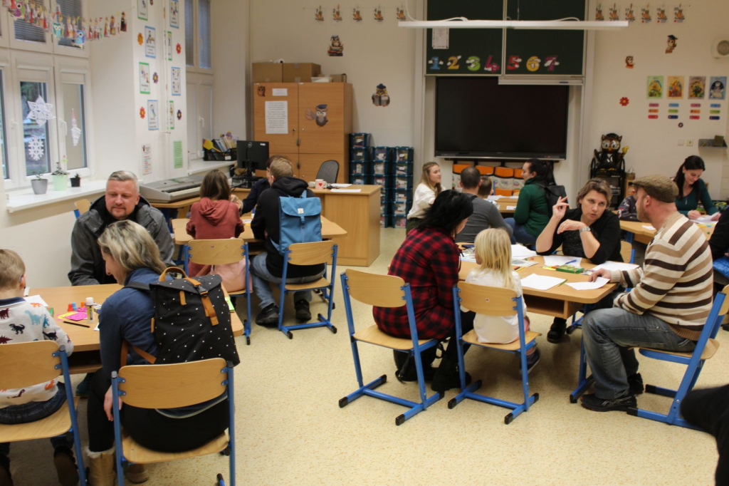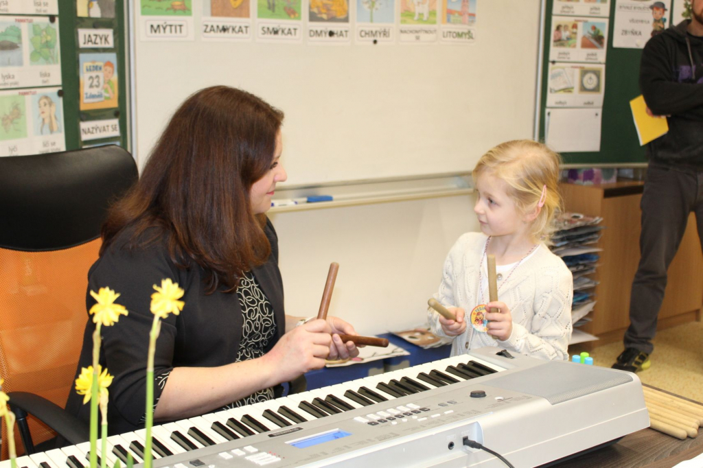 Další stanoviště představilo dětem i rodičům propojení výuky s digitálními technologiemi. Děti zde pracovaly na interaktivní tabuli. Jiná zastávka prověřila pohybové dovednosti dětí. Na posledním stanovišti si děti zazpívaly, ukázaly svoje rytmické dovednosti.