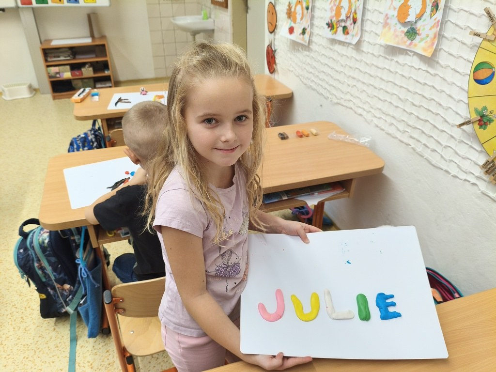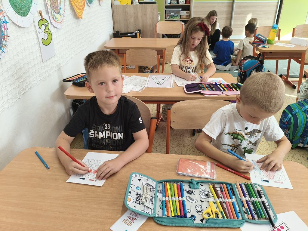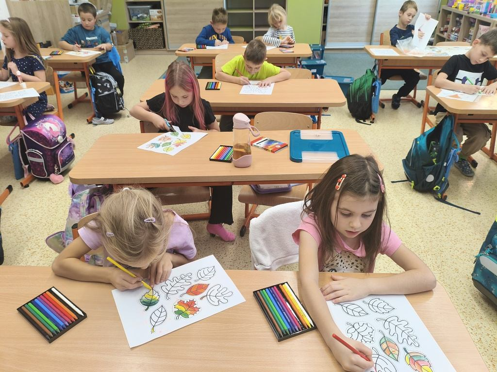 První dva měsíce školy utekly jako voda a naši prvňáčci se už naplno zapojili do školního života. V hodinách českého jazyka se učí poznávat první písmenka, v matematice objevují kouzlo čísel a počítání. Nechybí ani tvořivost – při výtvarné výchově vznikají krásné podzimní obrázky a v hodinách praktických činností si děti zkoušejí práci s různými materiály.