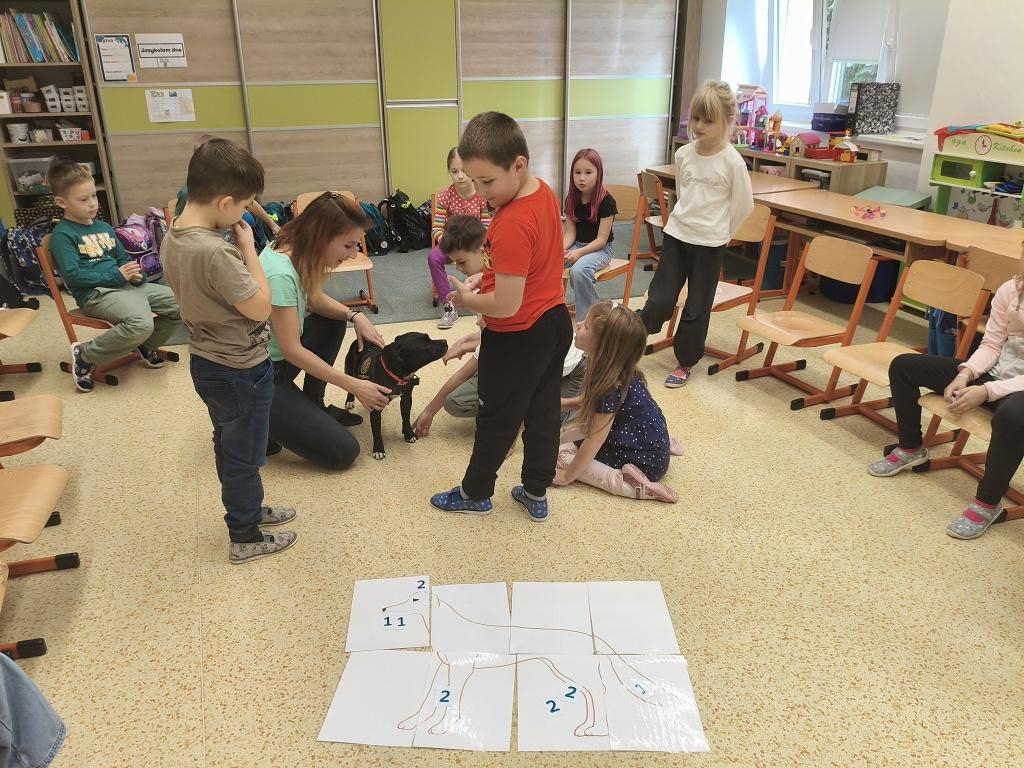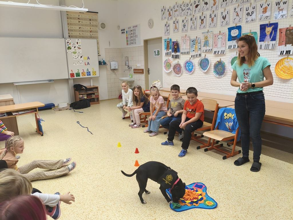 Velkým zážitkem byl také program Canisterapie, při kterém děti měly možnost se setkat se speciálně vycvičeným pejskem. Tato aktivita jim přinesla nejen radost, ale i nové zkušenosti v oblasti empatie, spolupráce a klidné komunikace.