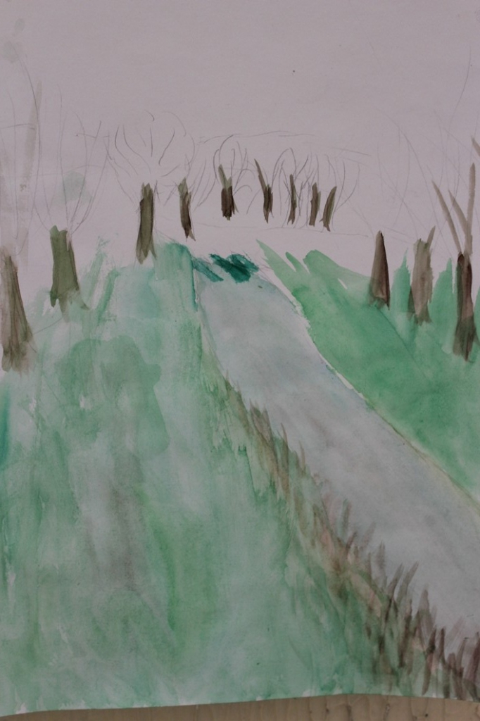 Jako impresionisté – tak jsme se vydali do přírody s barvami a štětci zachytit technikou akvarelu prchavé okamžiky v krajině kolem řeky Oslavy: výkresy jsme namáčeli v proudu řeky Oslavy, štětce rychle kmitaly po papíře podle hrubé skici tužkou. Některé práce zůstaly sice nedokončené, ale přesto jsou – stejně jako ty dokončené – pěknou ukázkou toho, jak těžké je zachytit světlo a stín či různé odstíny zeleně.