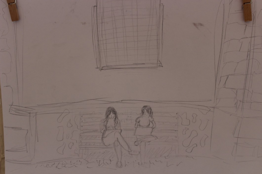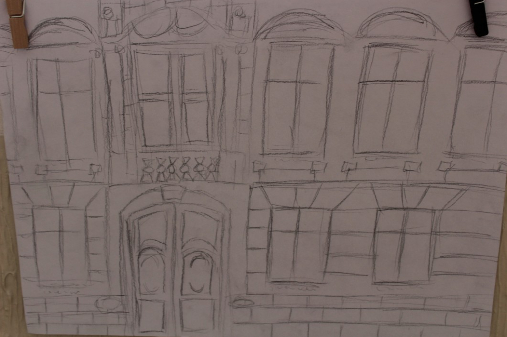 Podruhé jsme se vypravili do centra města zachytit momenty či zákoutí, tentokrát kresbou tužkou – někdo se pustil do architektury jako celku, někdo si vybral zajímavý detail, jiný zase moment propojení městského zákoutí s postavou.
