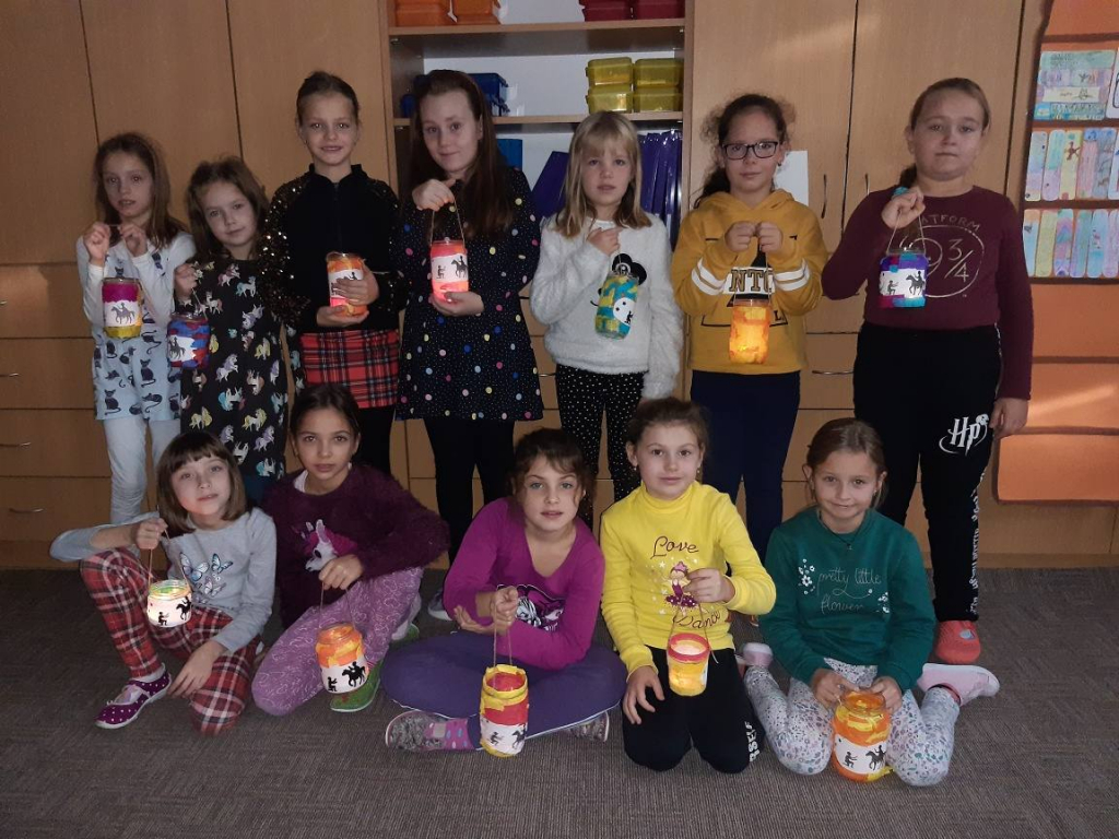Ve svátek sv. Martina je již nejtmavší období roku, a proto se často konají průvody se světýlky. My jsme si také vyrobili lucerničku a vždy ráno, dokud byla ve třídě ještě tma, jsme si ji zapalovali. Má nám prozařovat tmu, tak jako ji prosvětlovaly dobré skutky sv. Martina, a my se můžeme pokusit, dělat radost jako sv. Martin.