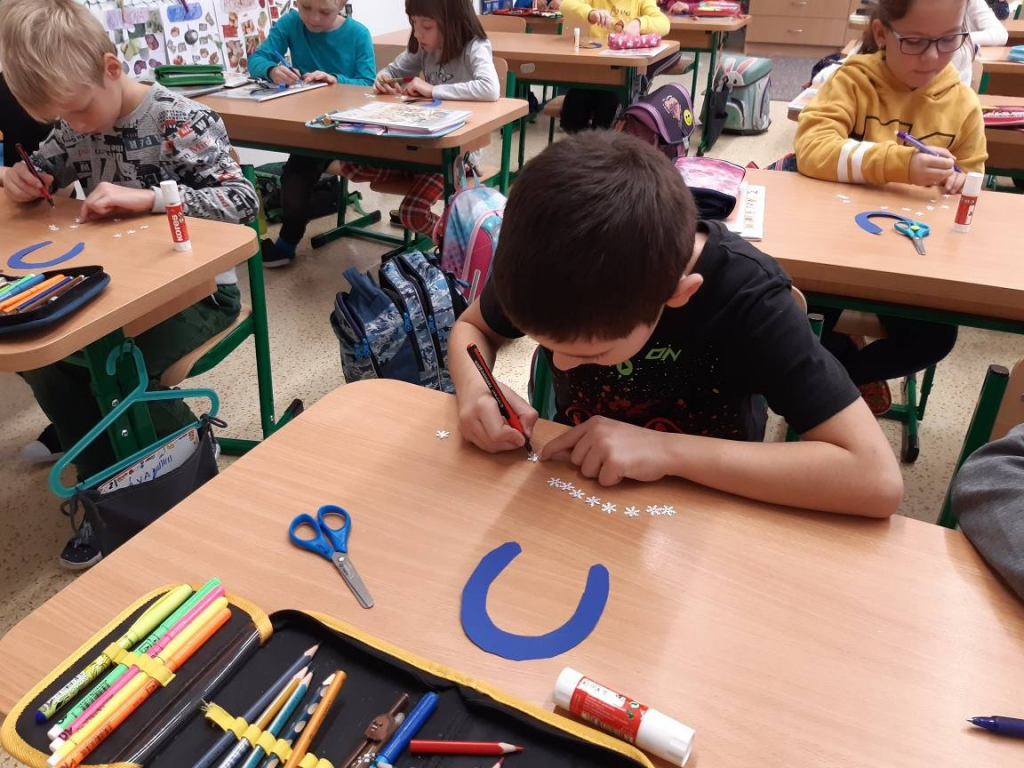 Vločky jsme pak sbírali a písmenka na vločkách jsme řadili podle abecedy na svatomartinské podkovičky a navzájem si je kontrolovali. Připomněli jsme si, že právě na svátek sv. Martina pečou hospodyňky rohlíčky zahnuté jako podkovy. Jiný příběh vypráví, že zlá macechy chtěla synka Martina otrávit rohlíkem. Aby poznala na pekáči, který je ten otrávený, zahnula rohy. Po vytažení plechu z trouby však byly rohlíky zahnuté všechny.