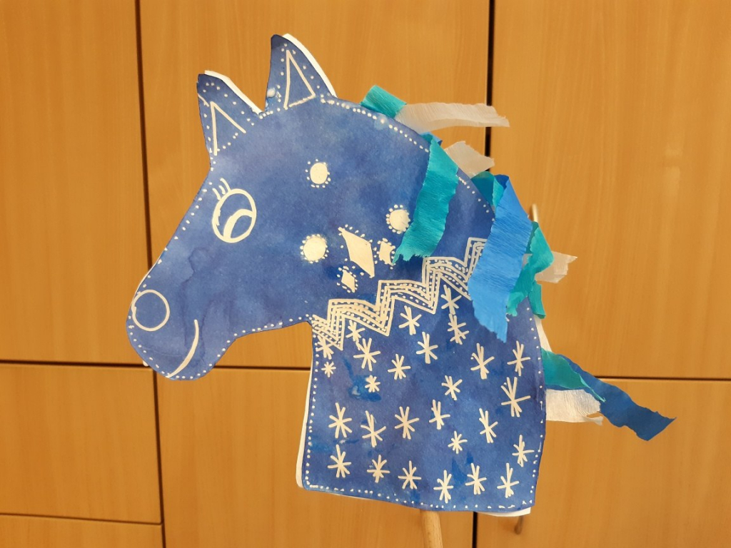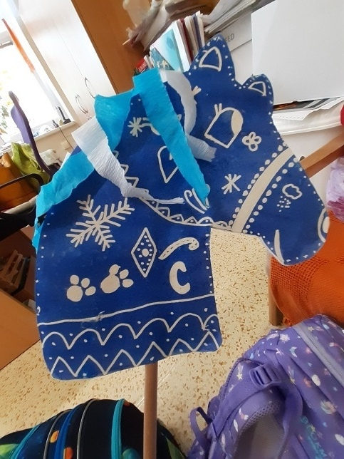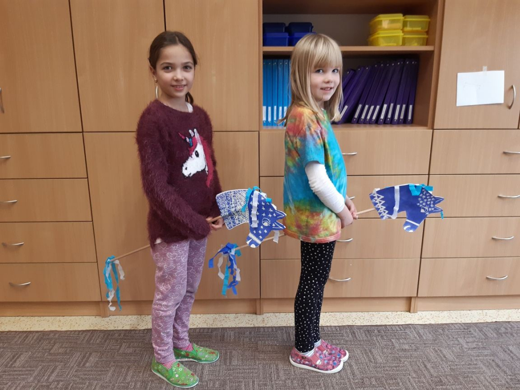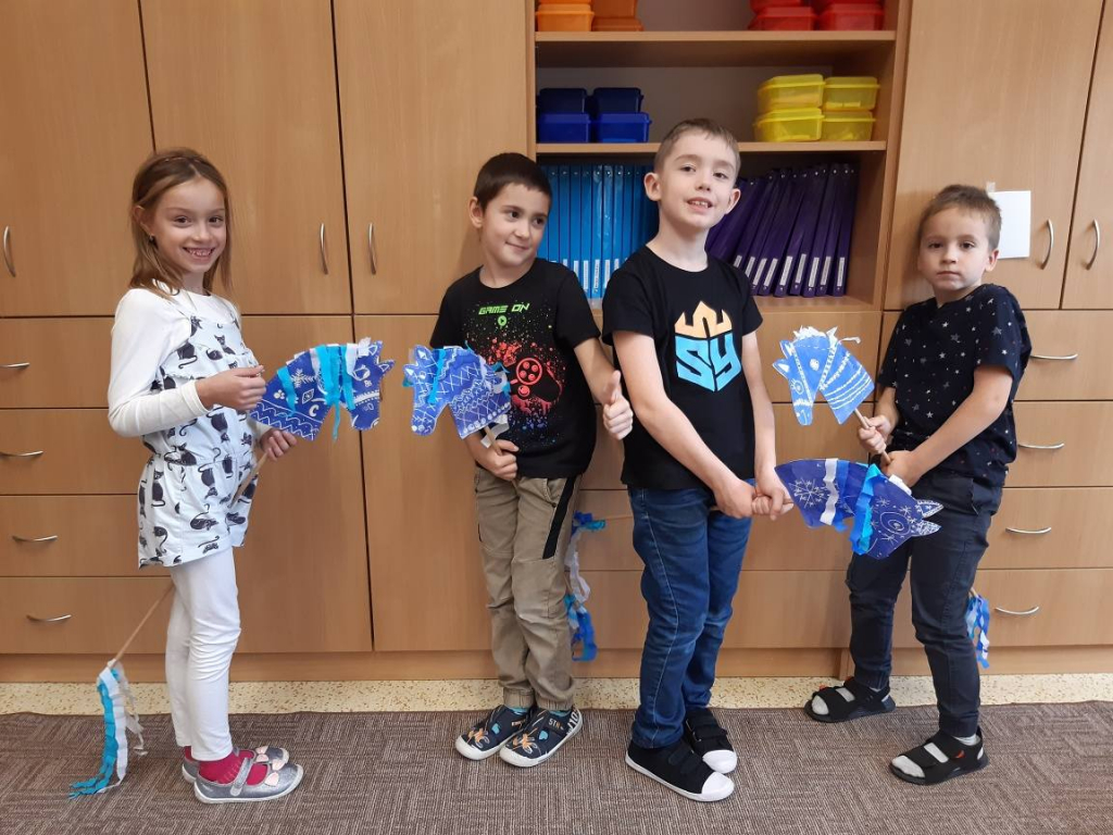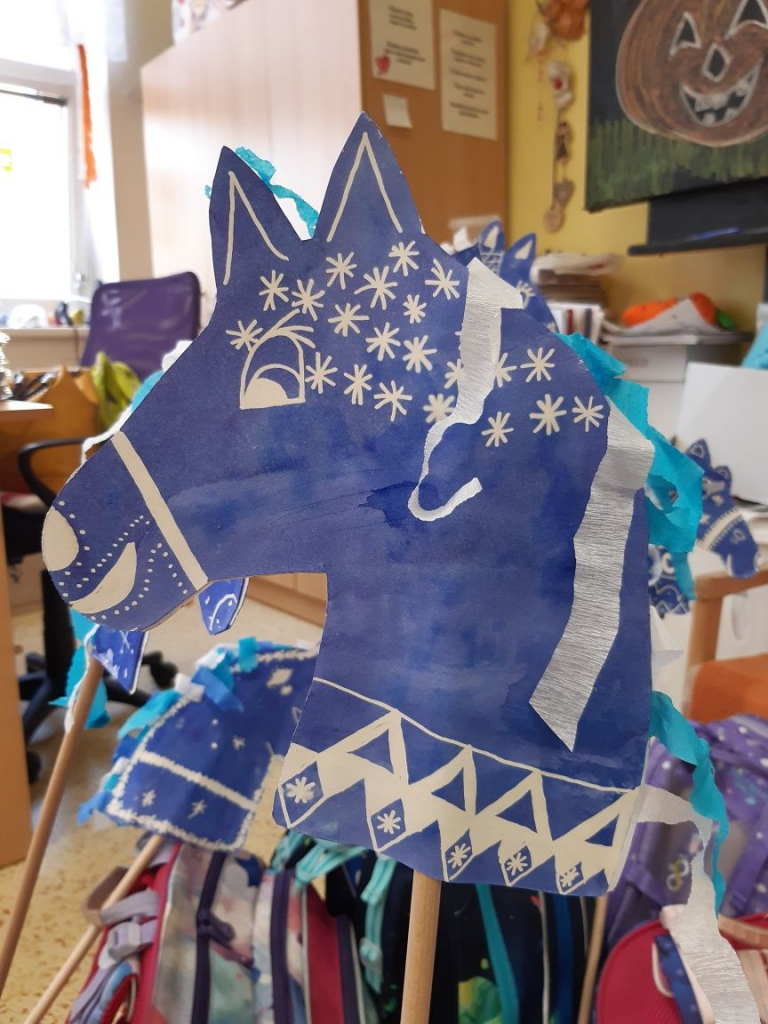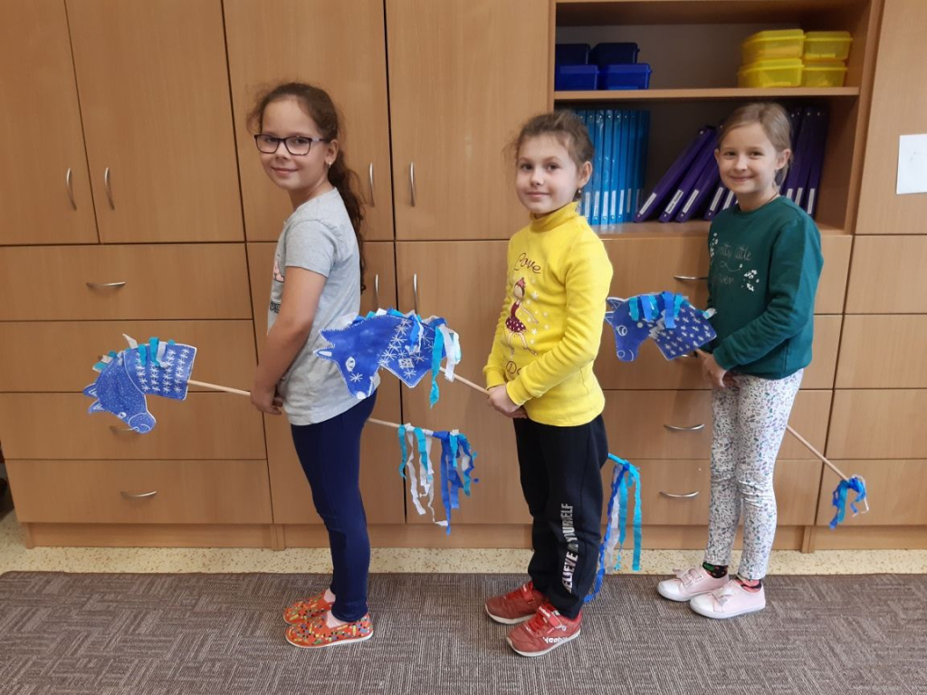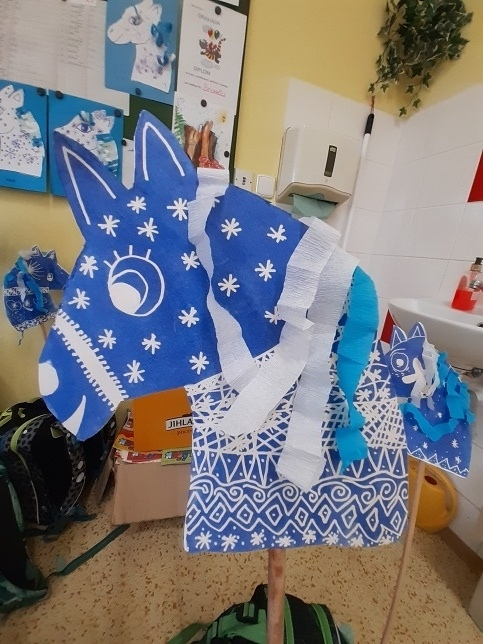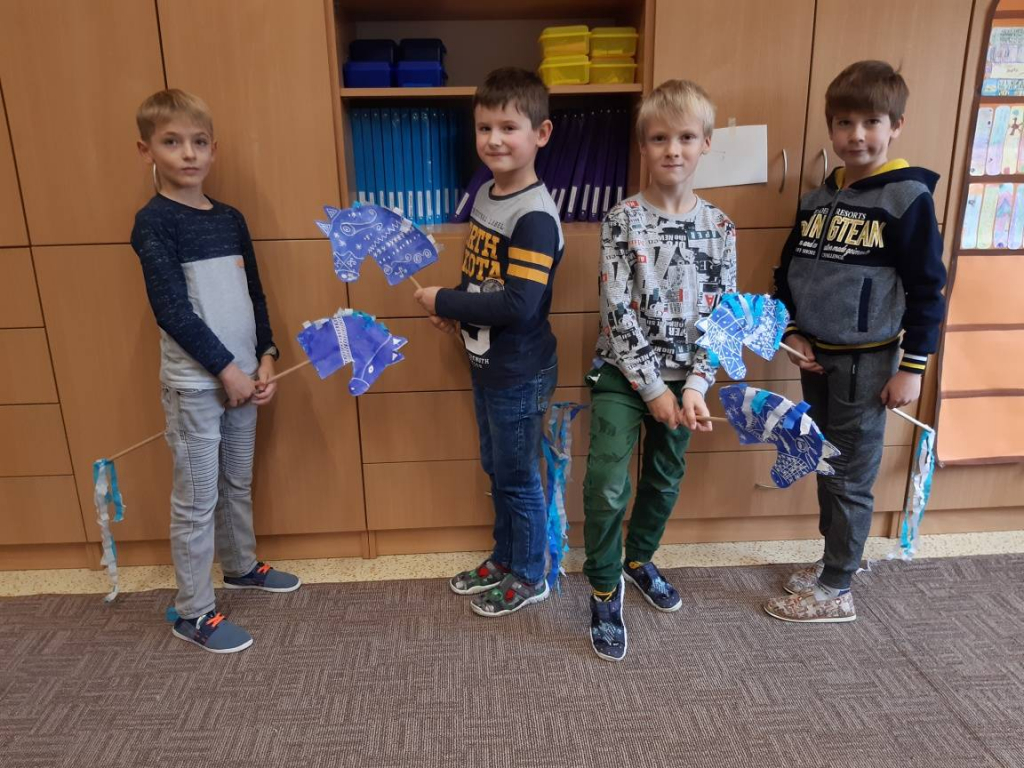 Svatý Martin byl voják a jezdil na koni. Proto jsme si i my vyrobili svatomartinského koně a na něm jsme pak jezdili po třídě.