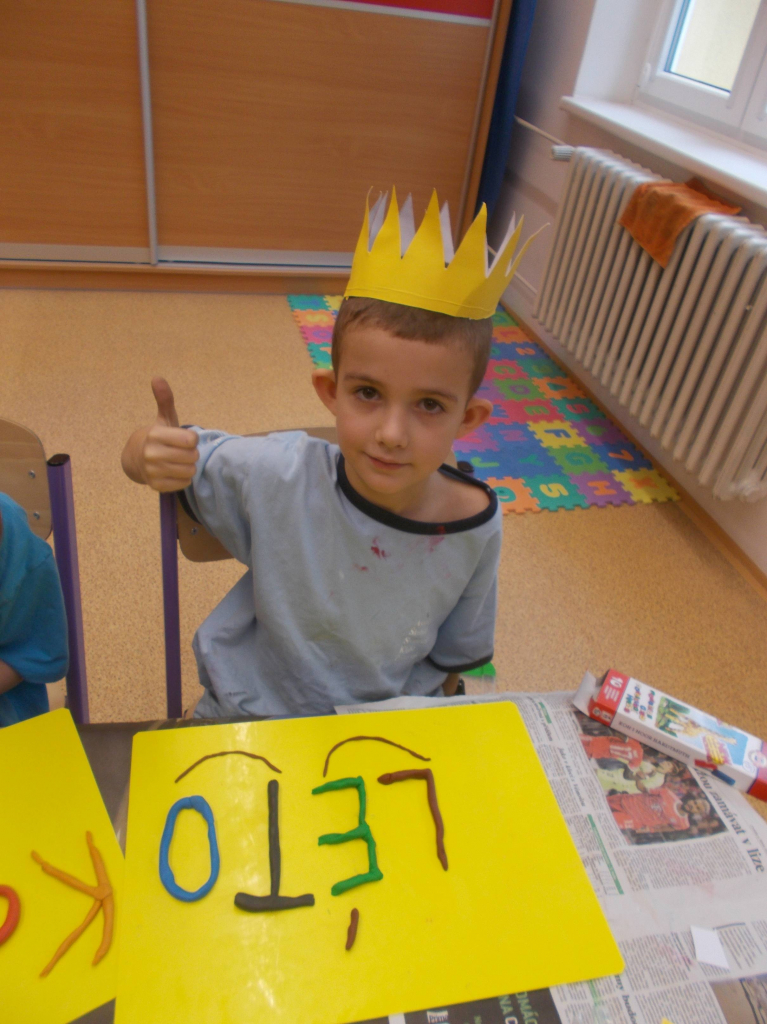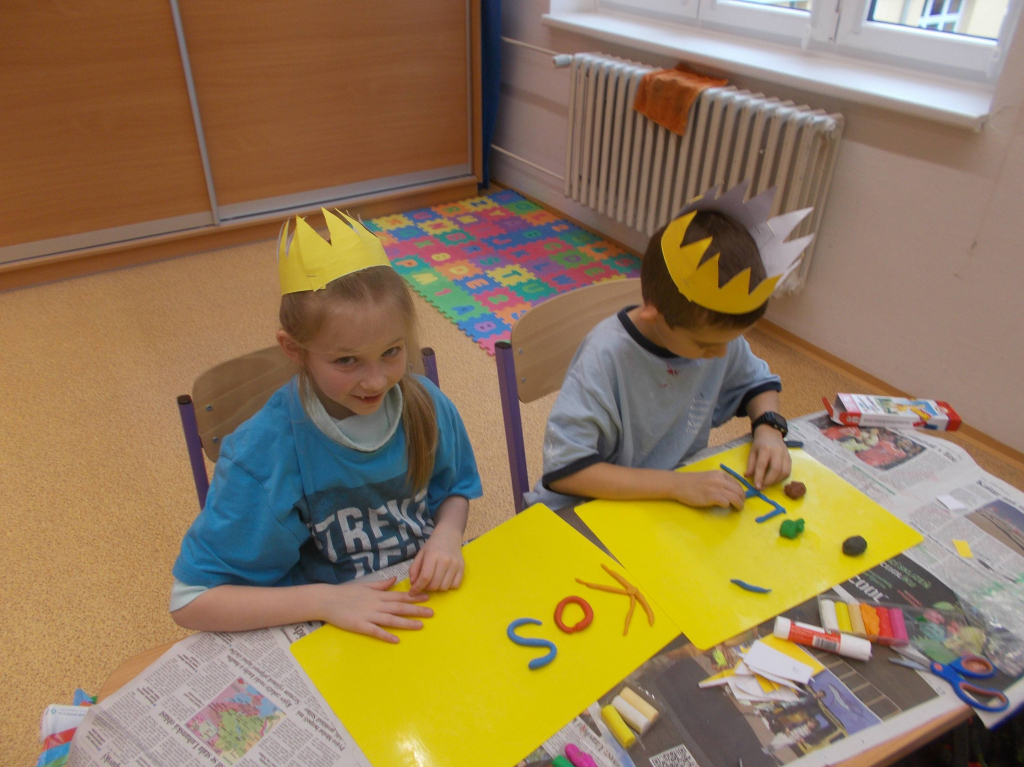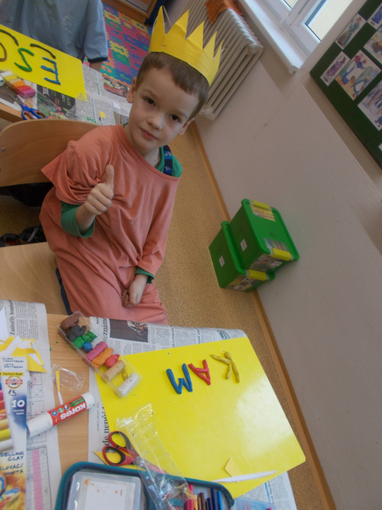 Ačkoli jsme se s královskými korunami na hlavách cítili vznešeně, pustili jsme se ve zbývající části hodiny do obyčejného modelování a skládání slov. Ani samotní králové se bez vzdělání - dobré znalosti psaní a čtení neobešli. Také na sobě pracujeme a neustále se zdokonalujeme.