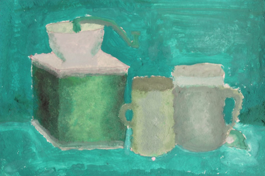 Téma zátiší jsme ve výtvarce v 8. ročníku neopustili a ještě jednou jsme se k němu vrátili - tentokrát v malbě. Zvláštnost této malby spočívala v tom, že žáci mohli použít jen jednu barvu, zato v různých jejích odstínech..