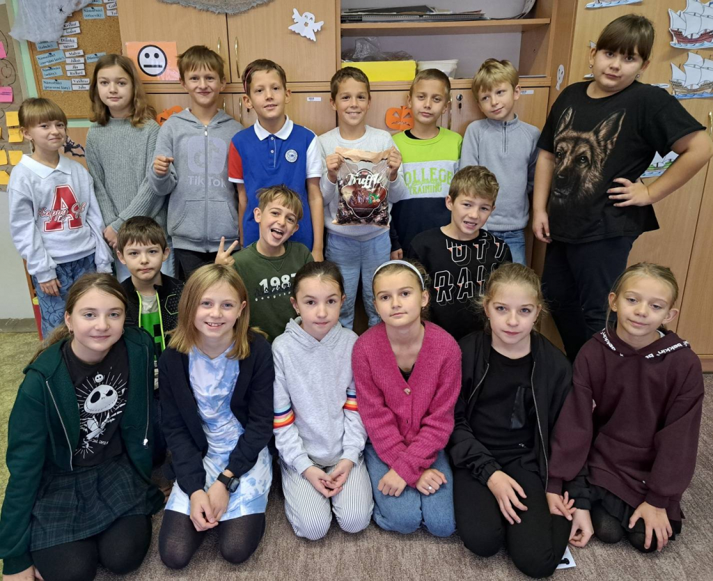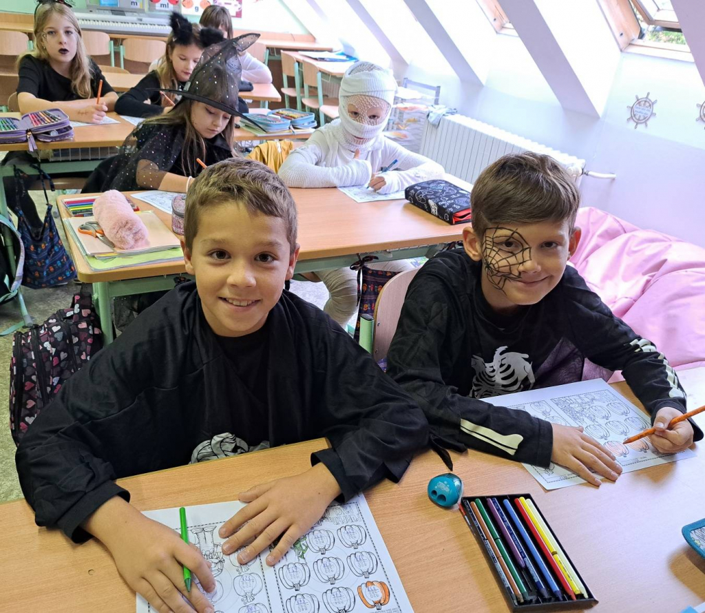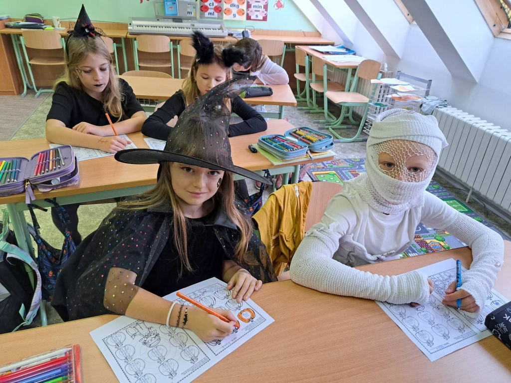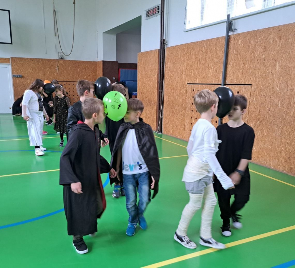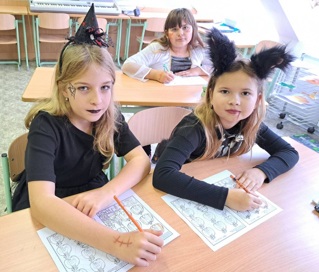 Minulý týden jsme pracovali na projektu Halloween. Prolínal se několika předměty. V českém jazyce jsme si napsali strašidelný diktát, pracovali jsme s textem, doplňovali vynechaná písmena. V matematice počítali příklady, v angličtině luštili slovíčka, v tělesné výchově si vyhráli s nafukovacími balónky a pet víčky. V pracovních činnostech jsme si vytvořili dýni a výzdobu třídy. Halloween jsme zakončili sladkou odměnou, kterou jsme získali od zástupců parlamentu, za 2. místo.