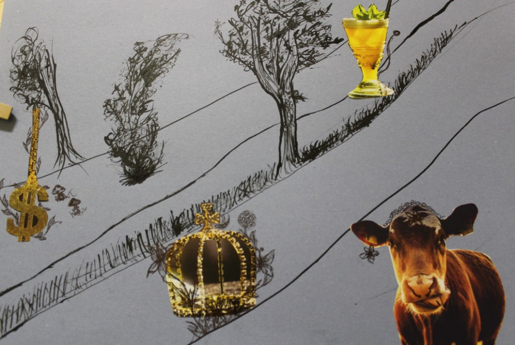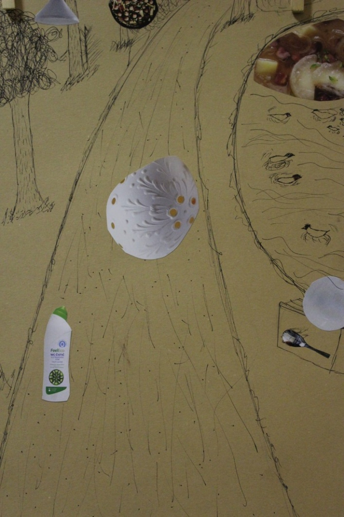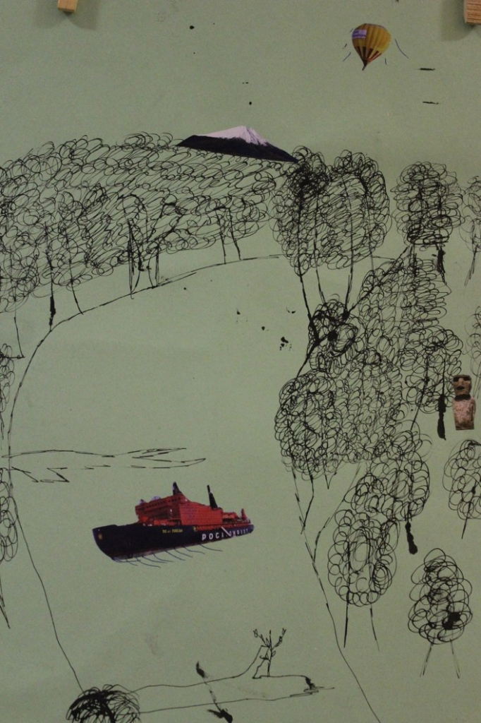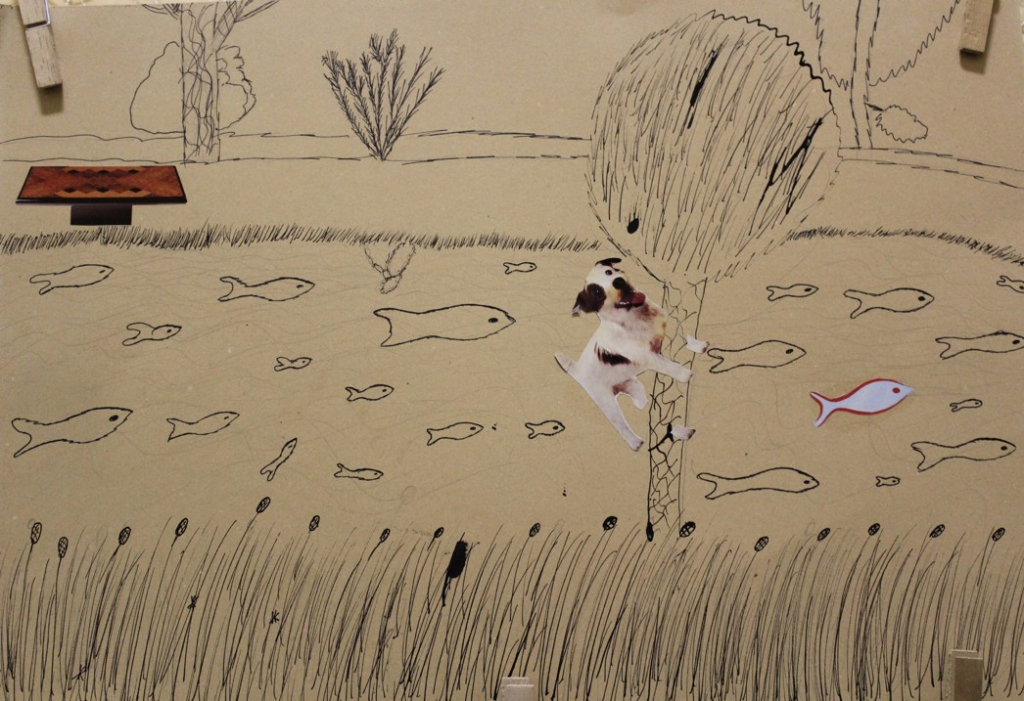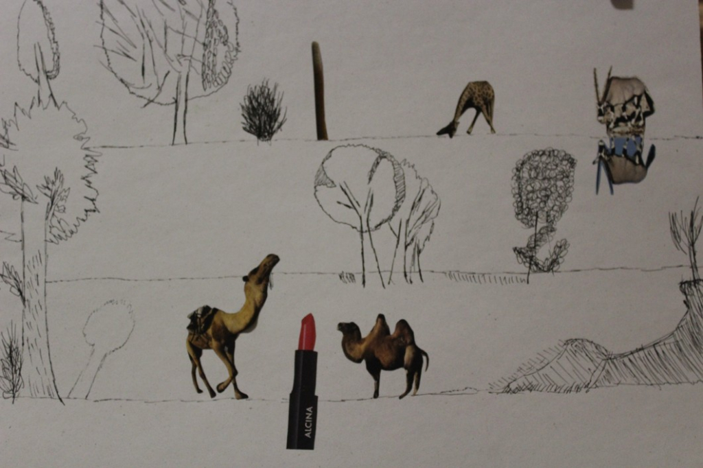 Podobný princip pak žáci přenesli i do výtvarné práce s krajinou, kterou pomocí koláže proměnili v krajinu absurdních setkání, v krajinu ze sna.