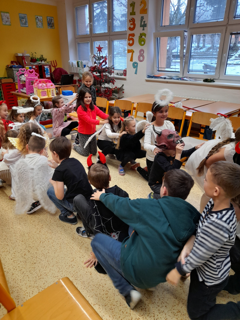 V pátek 8.12. jsme měli v družince Čertoviny a poslední týden nás opět navštívil Ježíšek a donesl dárečky. Jako poděkování jsme mu zazpívali koledy.