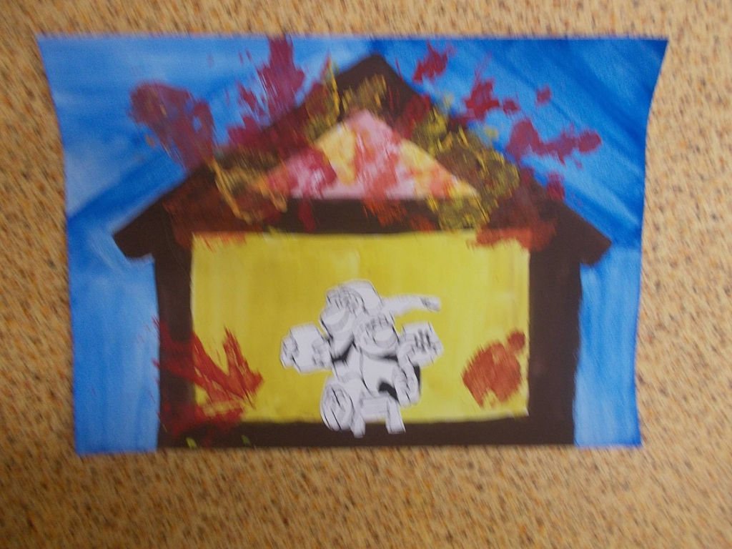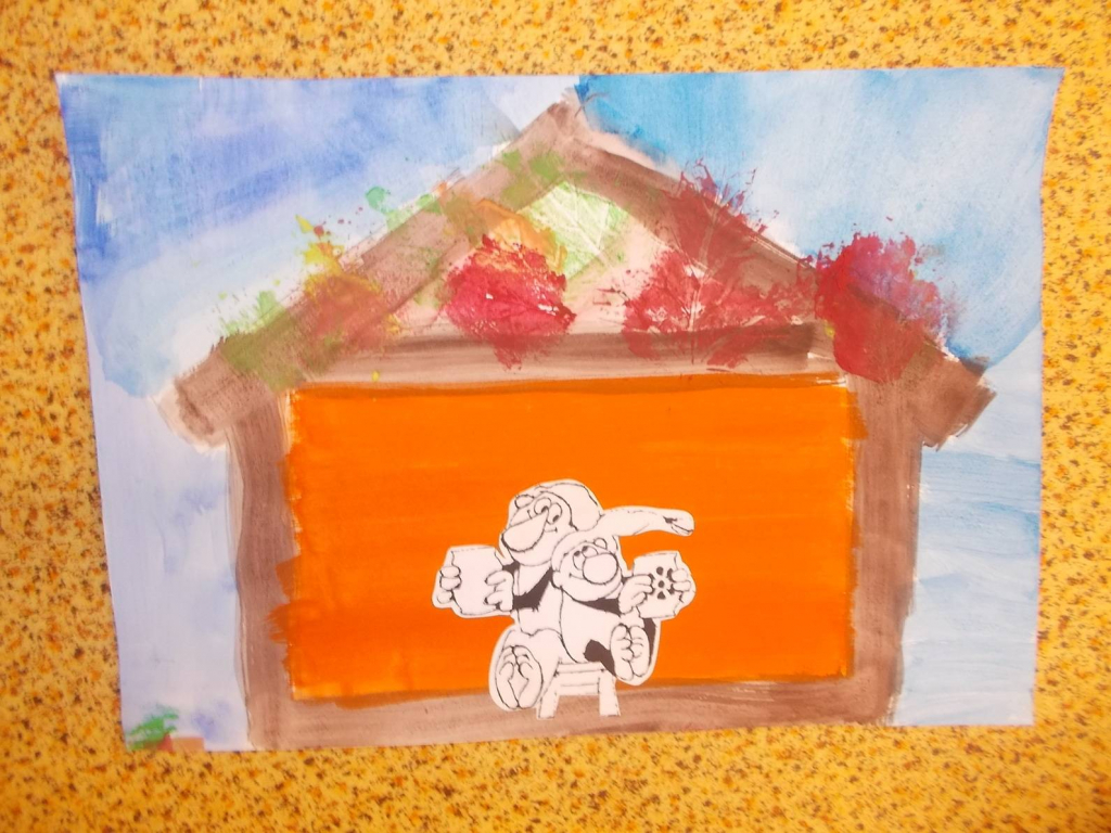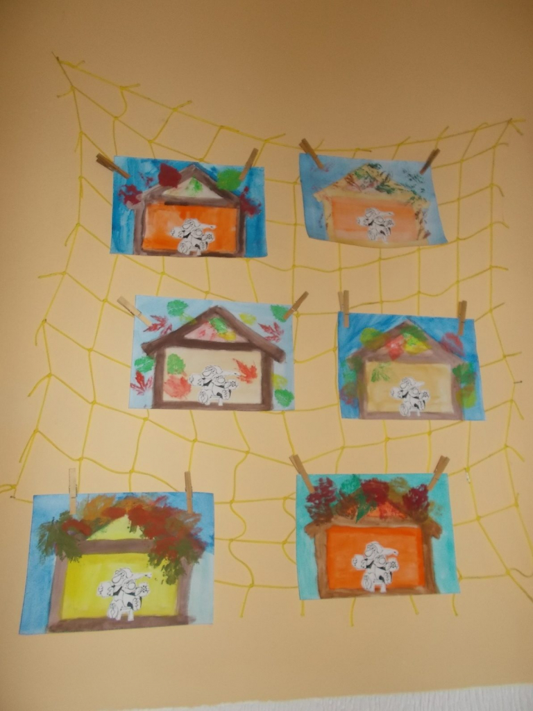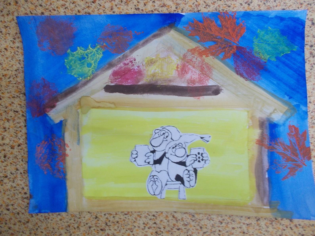 Kdo by neznal Křemílka a Vochomůrku! Jejich obydlí si žáci namalovali tak, aby mohli nahlížet do jejich skromného příbytku. Chaloupka všem připomíná, že je podzim. Celou si ji děti zasypaly listy. Vznikaly jako otisky skutečných listů temperovými barvami.