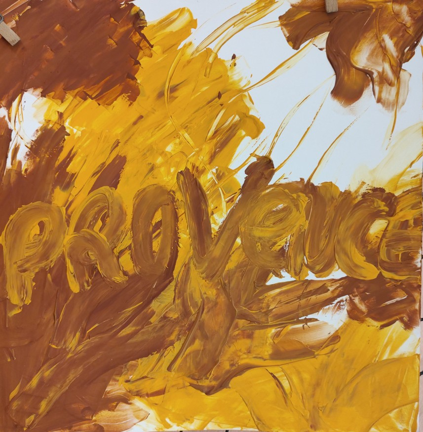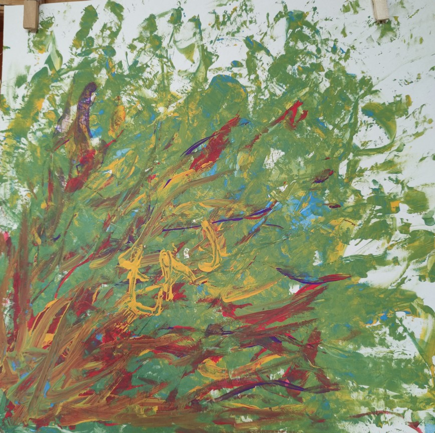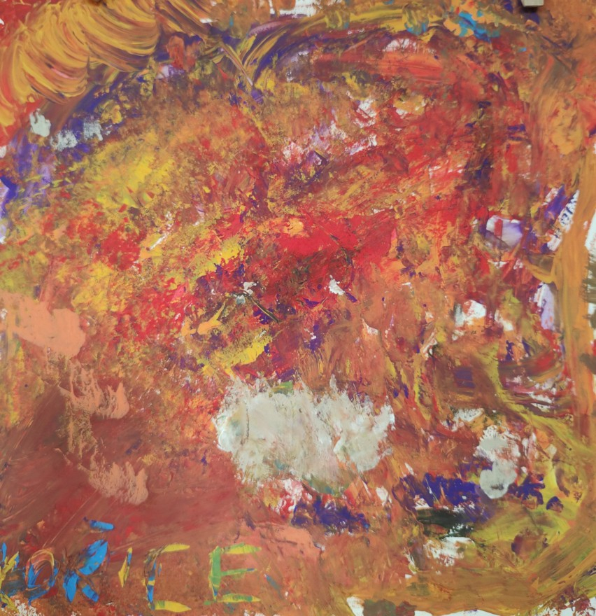 Po tomto motivačním úvodu dostali žáci k dispozici čtvercové formáty kartónu, akrylové barvy a gumové špachtle a zkusili pohybem barvy a špachtle po ploše zachytit "tvar, barvu a charakter" vůně vybraného koření nebo bylinek.