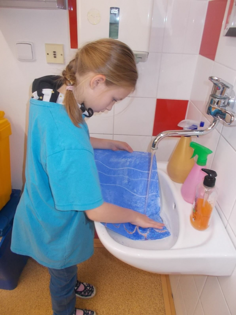 Na počátku roku jsme se vydali na společnou cestu za poznáním motivovanou cestou za pokladem. Za pokladem se plavíme na lodi. Ve výtvarné výchově jsme si nyní své lodě konečně i namalovali. Plastické plachty jsme si poskládali v praktických činnostech. Moře v pozadí pro nás bylo ojedinělé tím, že jsme si poprvé vyzkoušeli klovatinu. Žáci vymývali klovatinu pod tekoucí vodou. S radostí objevovali, co se bude dít.