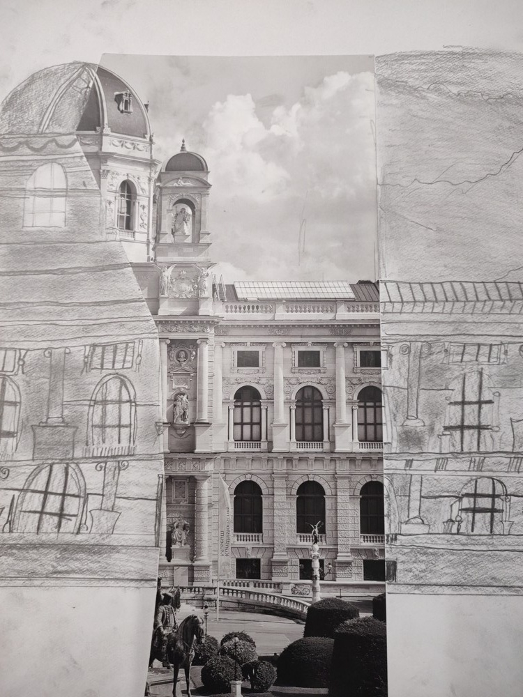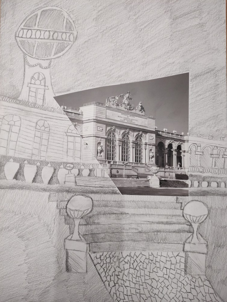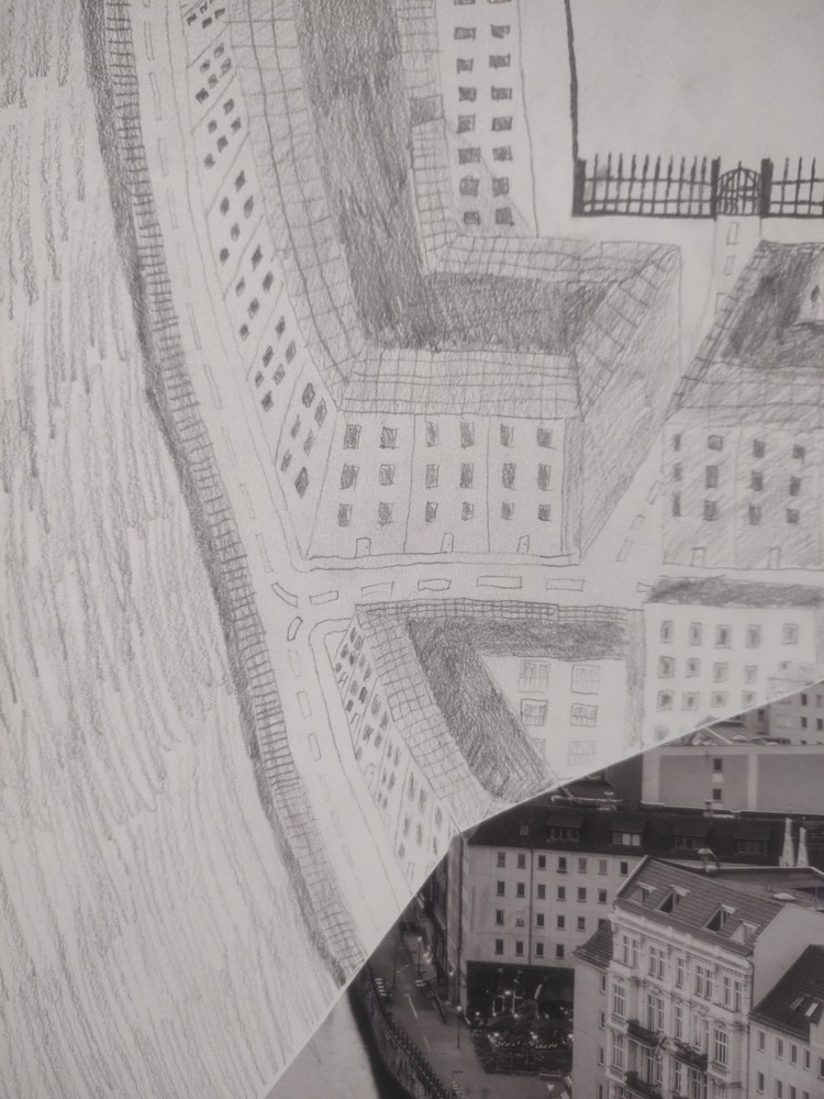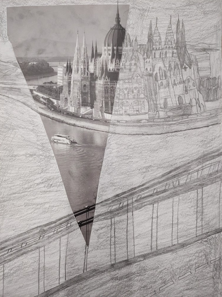 V další části projektu pracovali žáci opět s fotografií, tentokrát se jednalo o útržky černobílých fotografií městské architektury více či méně známých světových velkoměst i neznámých malých obcí. Tyto útržky dokreslovali do formátu A3 tužkou, přičemž sledovali perspektivní zobrazení, světlo a stín a strukturu města.