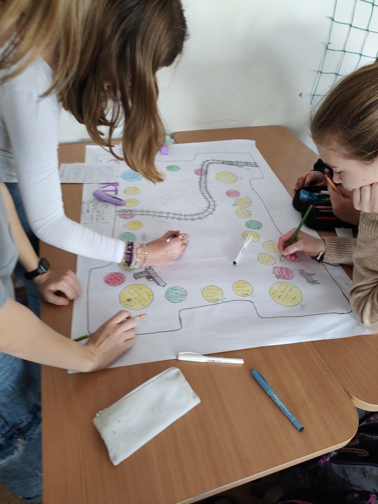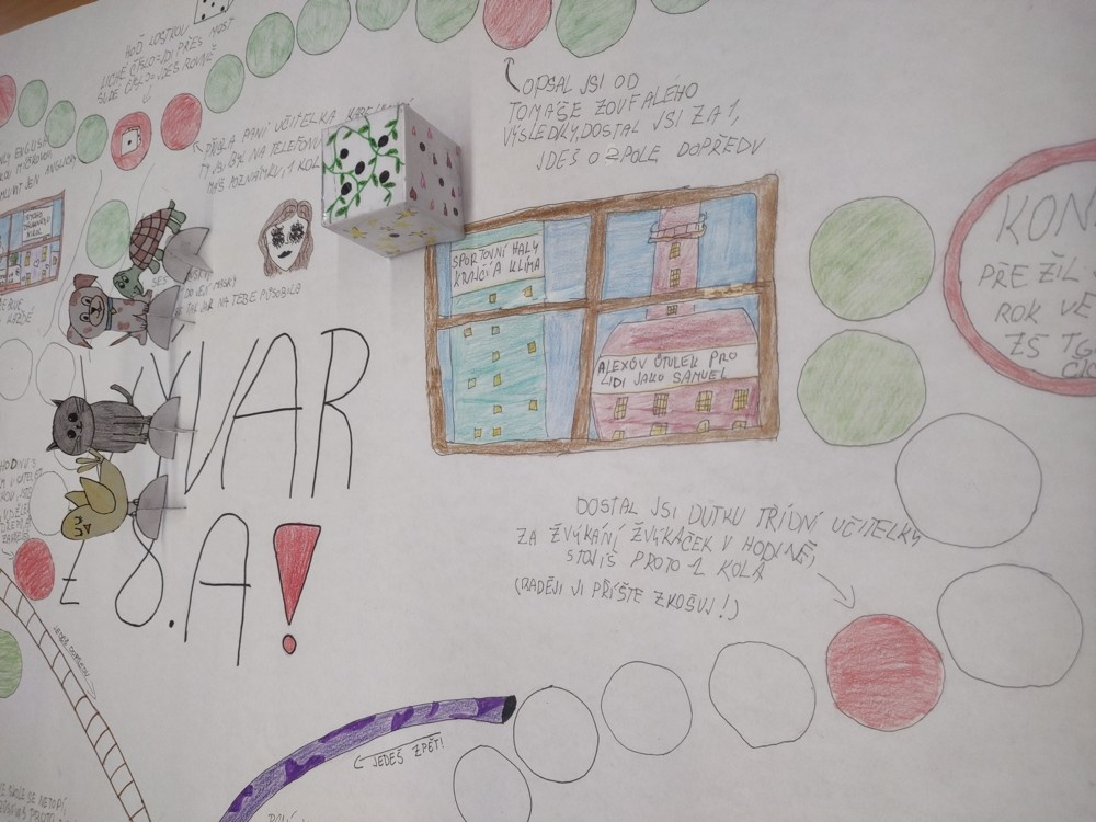 Tuto strukturu města jsme pak použili pro poslední část projektu, a sice (inspirováni přitom dílem J. A. Komenského - Labyrint světa) pro tvorbu města jako stolní hry: úkolem bylo vymyslet systém hry, vytvořit grafický design a nakonec i si samotnou hru zahrát. Žáci vytvořili tvůrčí skupiny a po dlouhém úsilí jsme uspořádali herní hodinu, kdy si všechny skupiny zahráli hru těch ostatních.