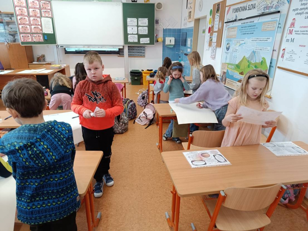 Vesmír je pro děti zajímavé téma, každého nějakým způsobem zaujme. Tento týden jsme se tímto tématem obklopili a vyzkoušeli si různé aktivity. První seznámení bylo v prvouce, kde si žáci vyzkoušeli oběžnou dráhu Země kolem své osy a kolem Slunce. Ve výtvarné výchově si zkusili namalovat naši Sluneční soustavu s planetami. Čtení začalo tématem v pracovním sešitě Jsem čtenář, kde bylo porovnávání textů a hledání chyb, tvorba otázek a vyhledávání odpovědí. Následovala křížovka, kdy každá dvojice hledala další informace v nových listech. Druhý blok čtení pokračoval odpovědí na otázky a opět vyhledávání ve dvojicích. Ukončení proběhlo v pracovních činnostech, kde si každý podle své fantazie vyrobil mimozemšťana. Děkujeme také paní učitelce Klečatské, která nám do třídy zapůjčila svoje modely planet. Byl to moc zajímavý výlet do vesmíru.