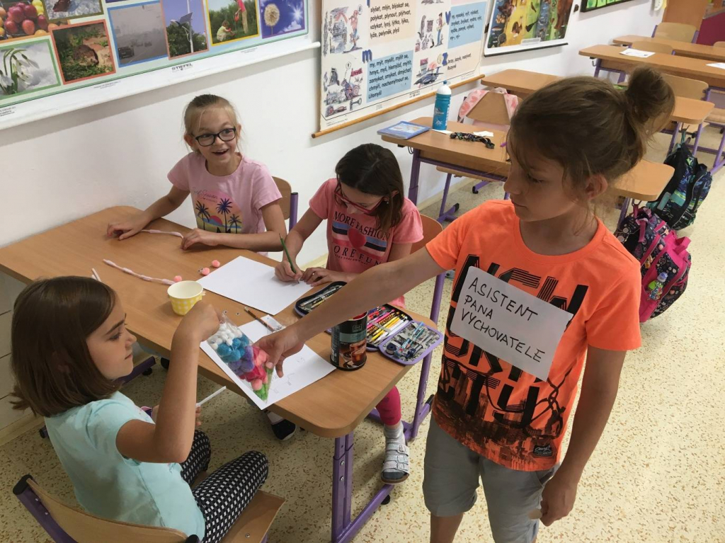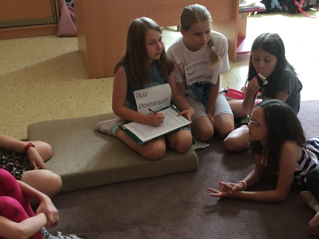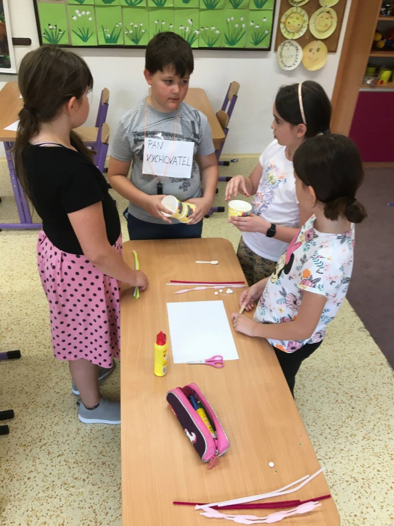 Kromě vyrábění přáníček pro tatínky si děti zahrály na paní vychovatelku nebo pana vychovatele. Tato role se jim moc líbila a užívaly si jí. Jejich postava byla velice důležitá a chtěly v ní pokračovat každý den.