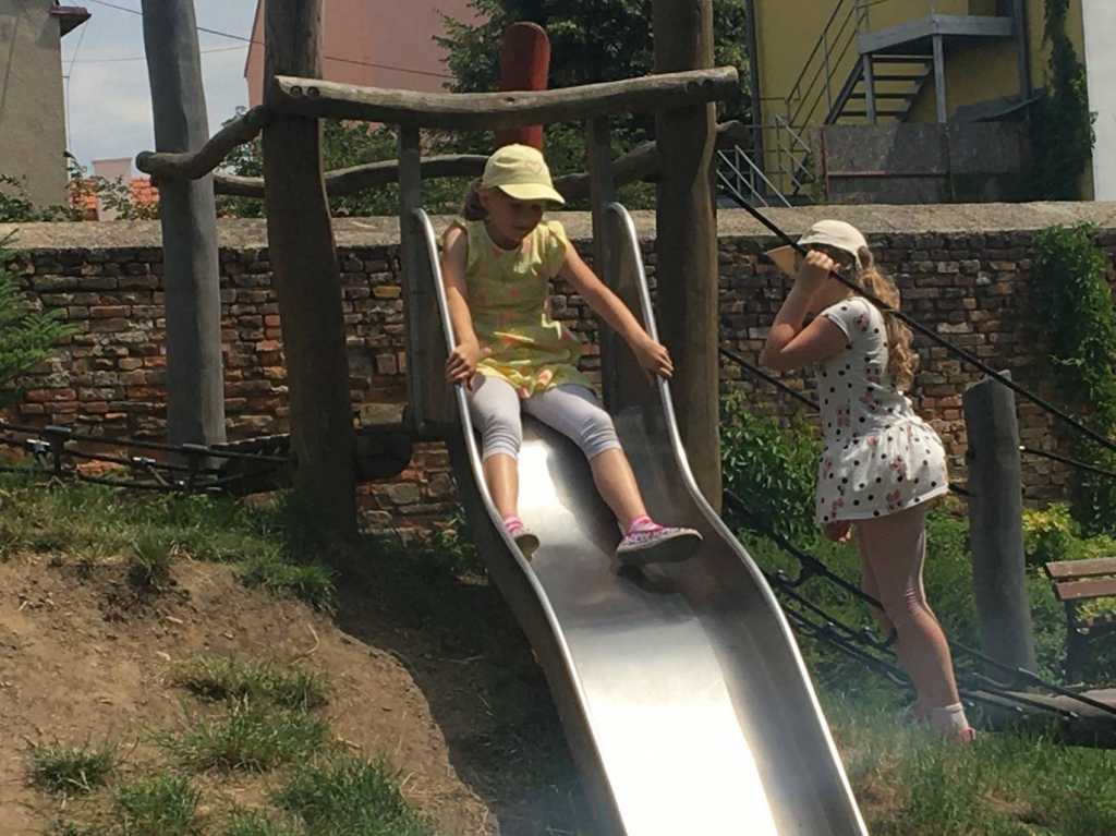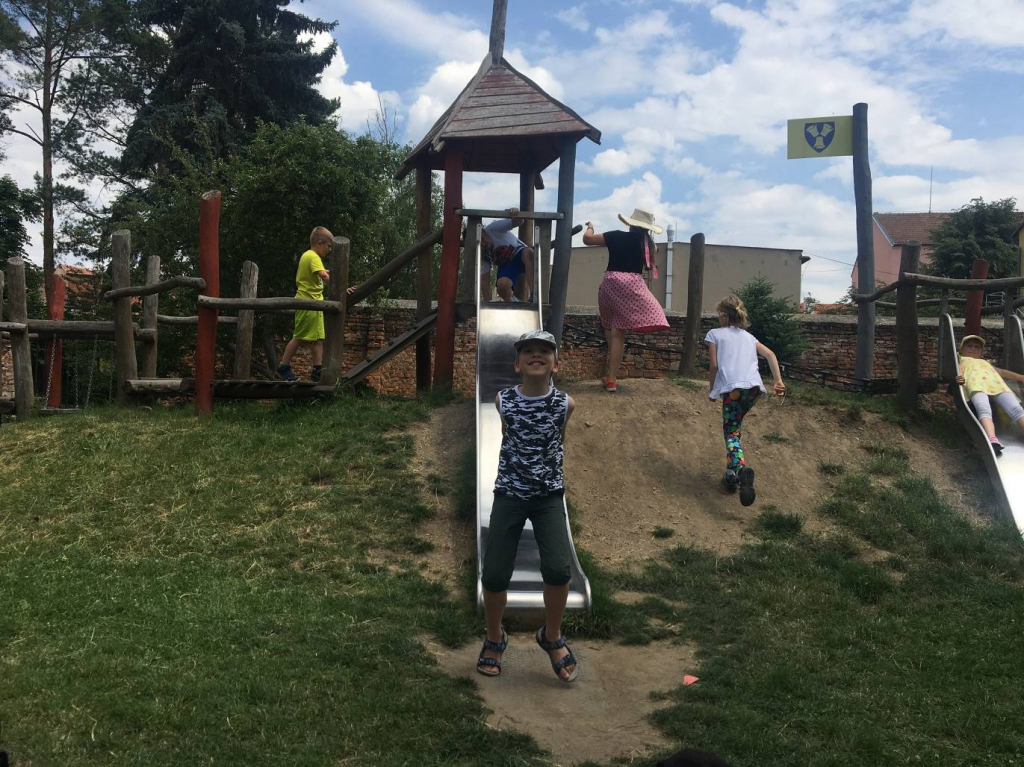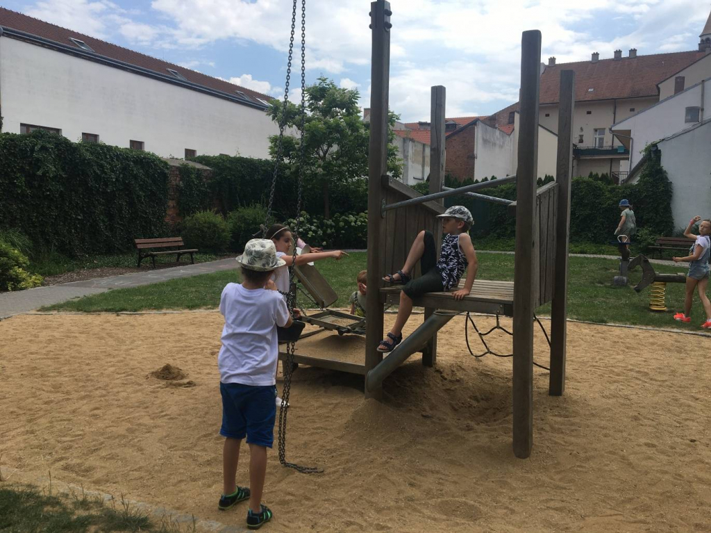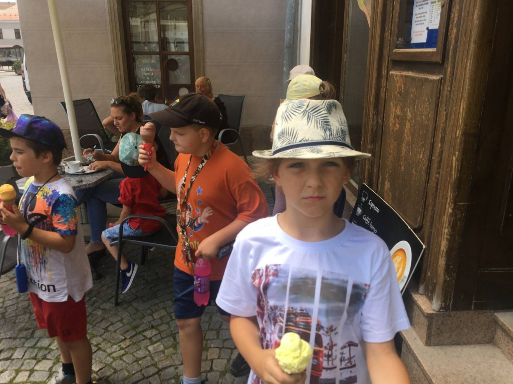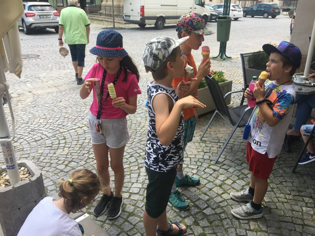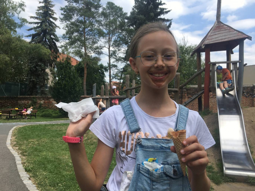 V pátek jsme se vydali do města do cukrárny na zmrzlinu a na hřiště.