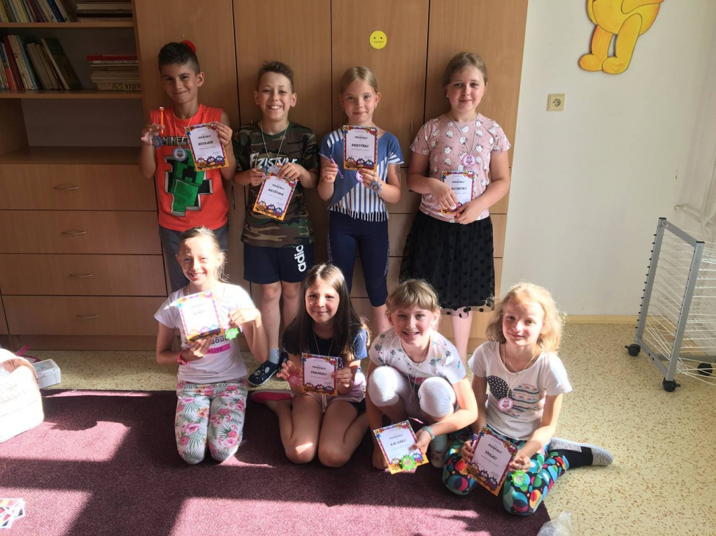 Poslední školní den jsme se rozloučili, dětí dostaly drobné dárky, pochvaly a medaile jako památku na tento školní rok.