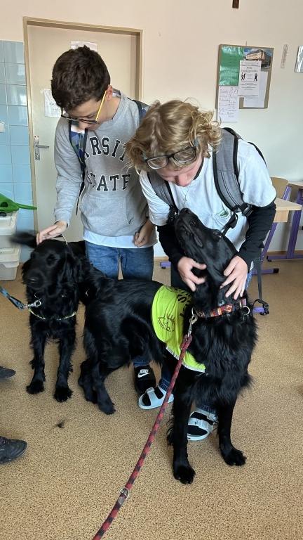 V pondělí 21. října se konala v 8. ročnících beseda na téma smysly. Navštívila nás nevidomá paní Bezáková s vodícím pejskem.