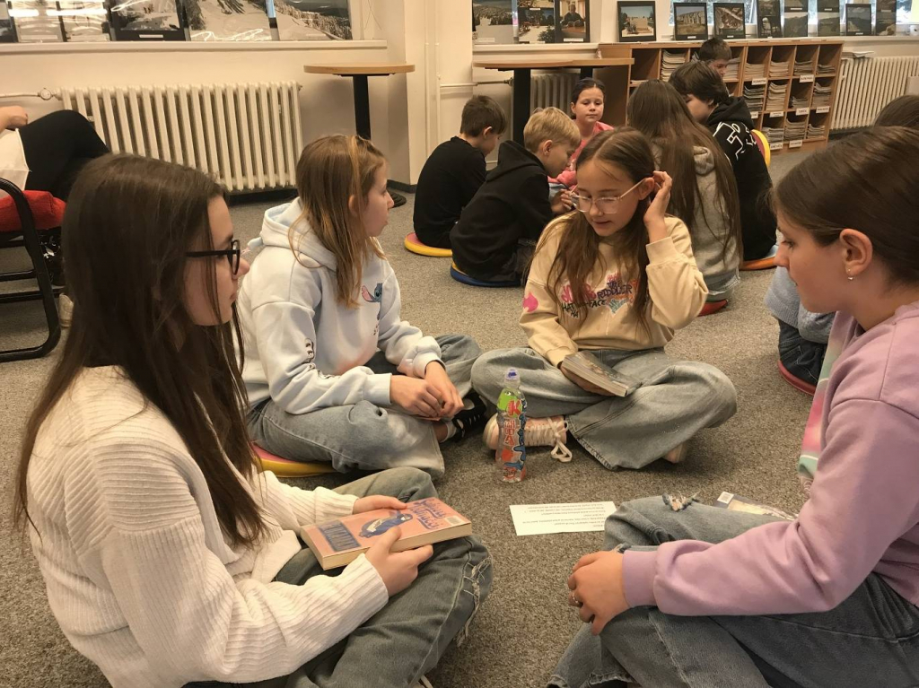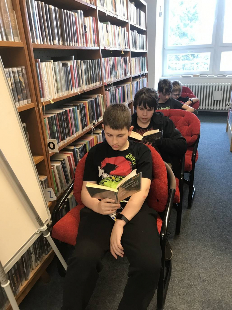 Děti si nejprve vybraly knížku z připravené nabídky. Každý si našel nějaké místo ke čtení. Potom si žáci ve skupinkách jednotlivé tituly představovali. Museli se domluvit a vybrat za skupinu jednoho zájemce, který si zahrál na „prodejce knih“.