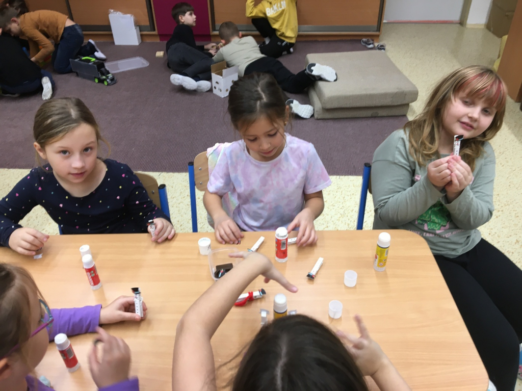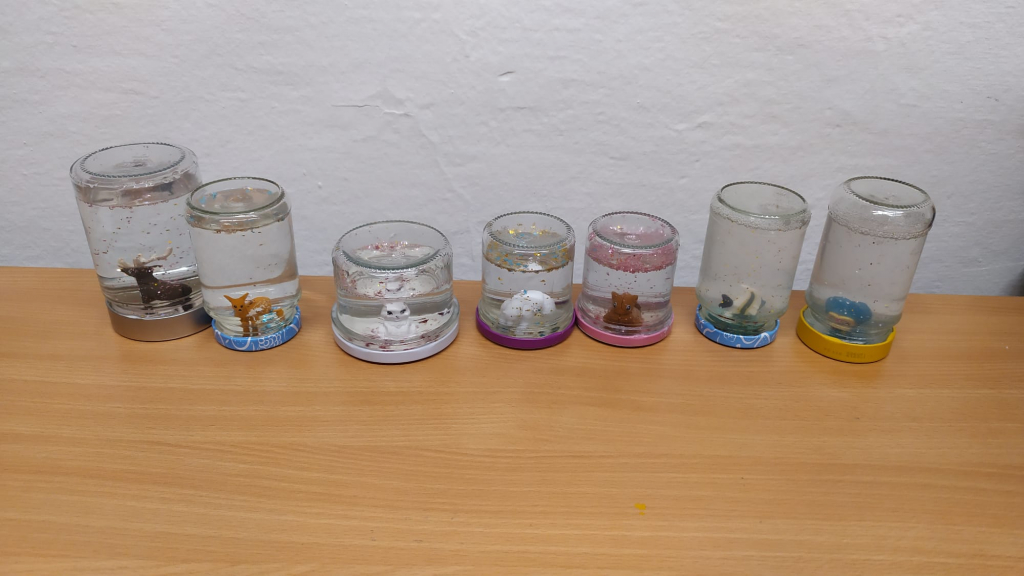 Na konci měsíce se děti pustily do výroby sněžítka. Každý měl možnost vytvořit si své unikátní sněžítko, ve kterém se ukrývala oblíbená hračka a spousta třpytek.