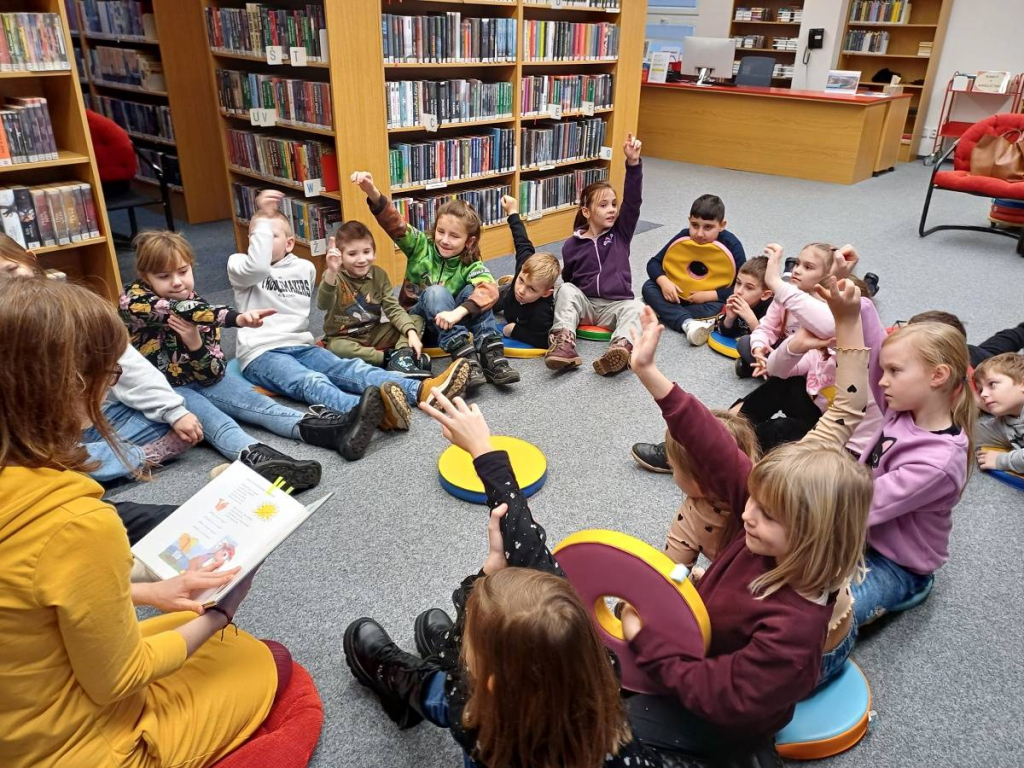 Na závěr pobytu v knihovně téměř všichni využili možnosti vypůjčit si knihu domů. Mnoho dětí již navštěvuje knihovnu pravidelně a účastní se soutěže Lovci perel. Čas strávený v knihovně jsme si společně užili. „S knihou je nám dobře.“