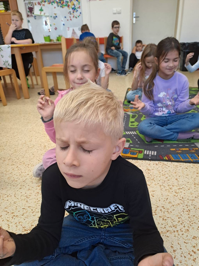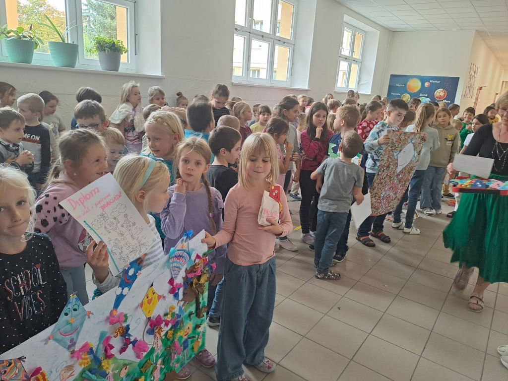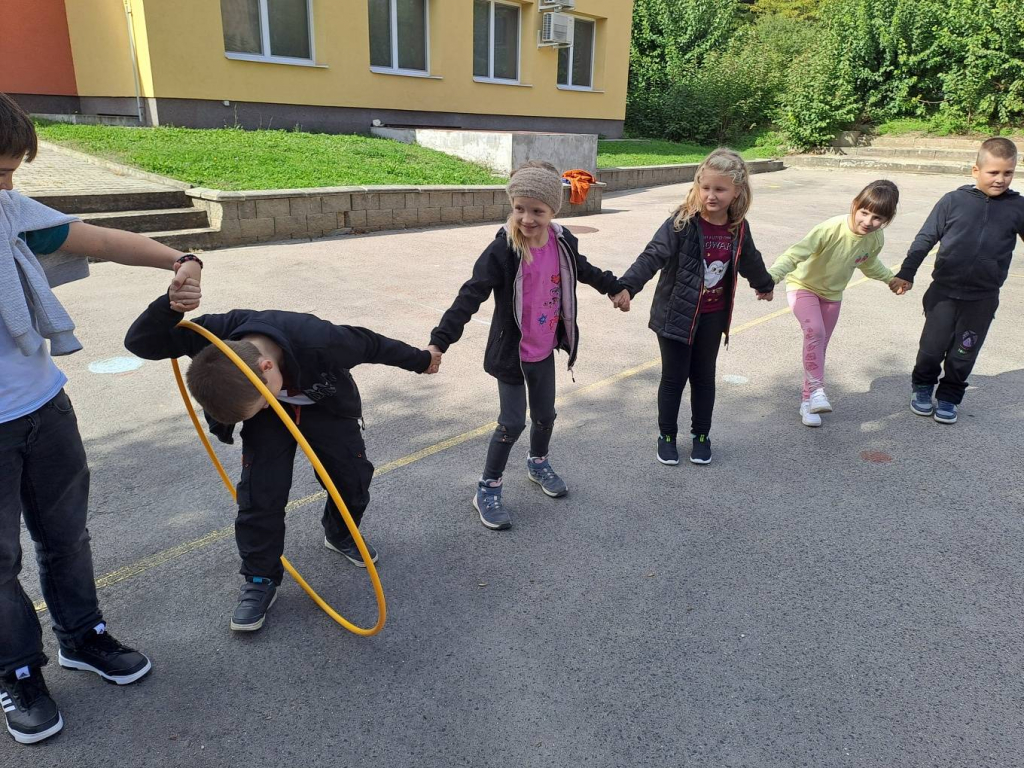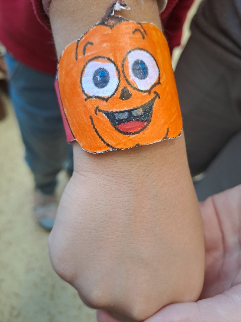 Kromě tvoření jsme také trávili čas na školním hřišti, kde probíhaly různé hry a soutěže. Žáci si užili spoustu zábavy a pohybu na čerstvém vzduchu. Podzimní atmosféru jsme si přiblížili výrobou dekorací, modelovali jsme z hmoty šneky, kteří krásně ozdobili naše podzimní výtvory. Děti si také vyrobily náramky na ruce s motivy dýní, duchů a netopýrů, které byly velmi oblíbené.