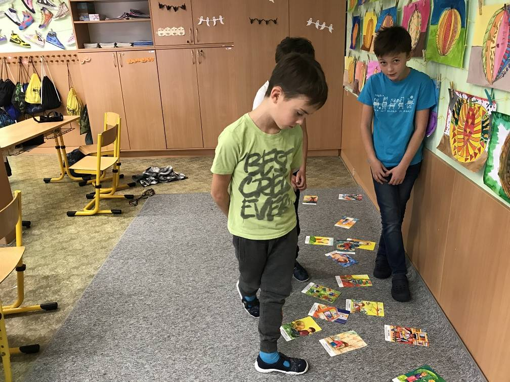 Ve třídě V. B jsme se ve dvouhodinovce výtvarné výchovy nechali inspirovat barevným podzimem a iniciativou Výchova ke ctnostem. Propojením vznikly tři společné koláže, kdy děti jednak tvořily podzimní list volnou technikou a jednak si prohlížely výtvarně krásně zpracované karty ctností.