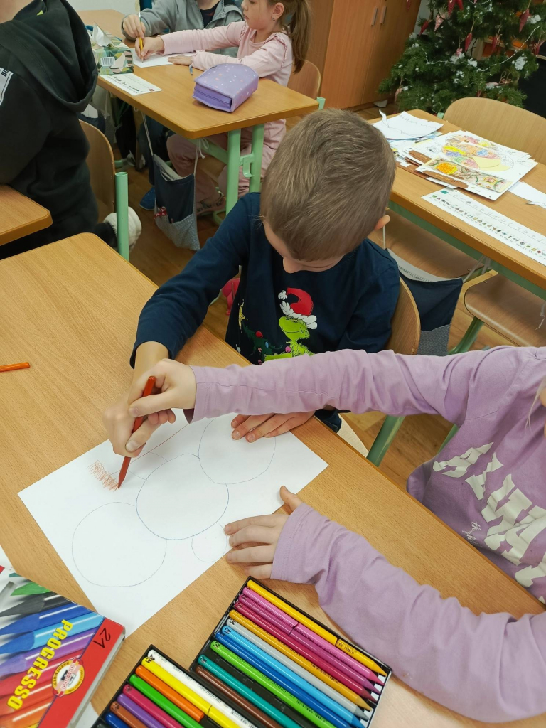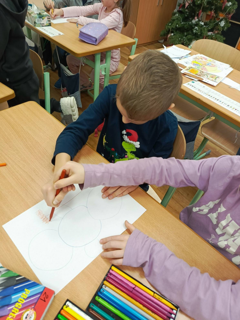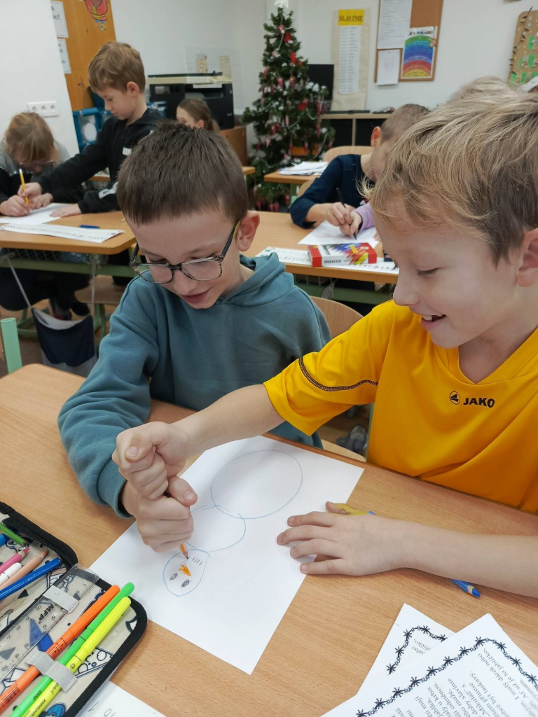 V měsíci prosinci jsme si povídali o adventu, četli příběhy o svatých, navštívil nás Mikuláš s anděly a čerty, vyráběli jsme svícny, lucerny, procvičovali učivo psaní u, ů, ú, třídili hlásky, doplňovali y, ý, i, í do slov, malovali sněhuláka ve dvojici jednou tužkou, plnili úkoly s vánoční tématikou, zhlédli film „Cukrkandl“, nachystali třídu na vánoční besídku. Už se moc těšíme!