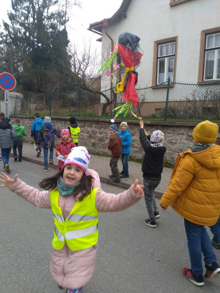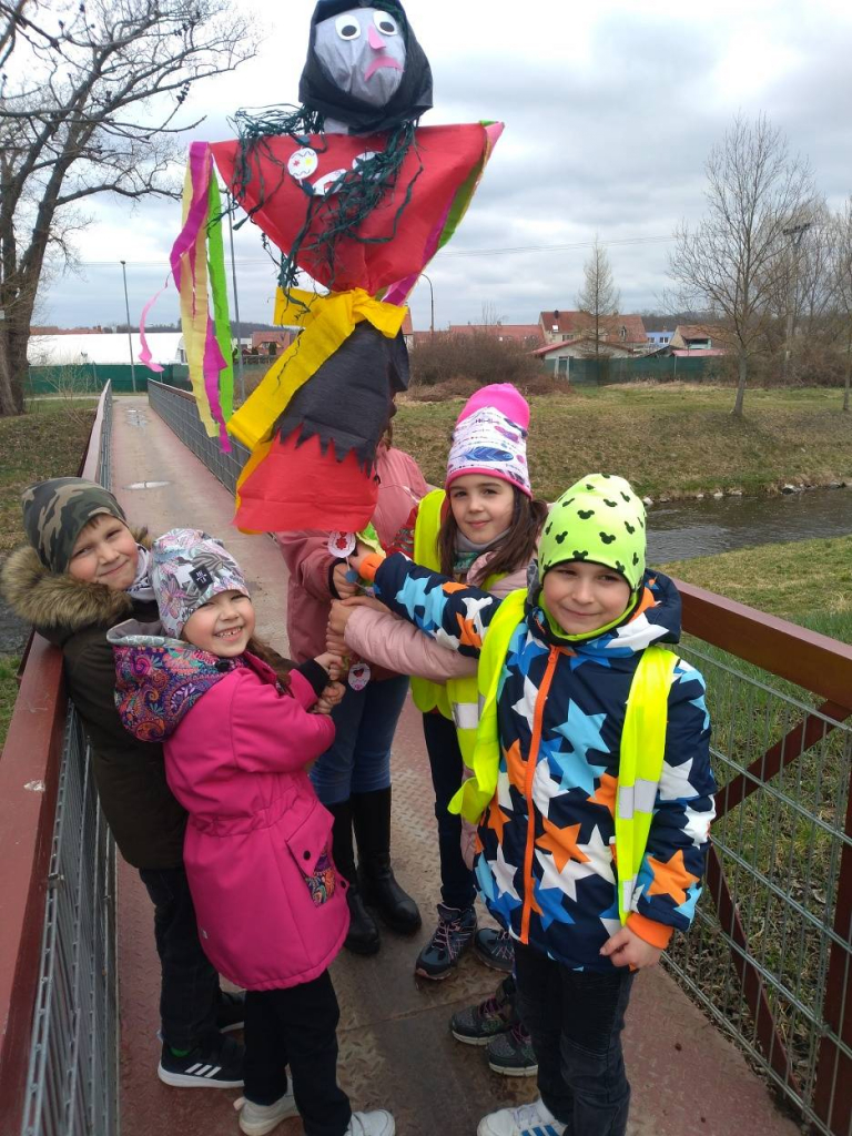 V pátek naše školní družina přivítala jaro zvykem zvaným „vynášení Morany“. Moranu jsme vynesli na most u cyklostezky a vhodili ji do vody. Žáci sledovali Moranu plovoucí po proudu řeky až k zastávce „U Šneka“.