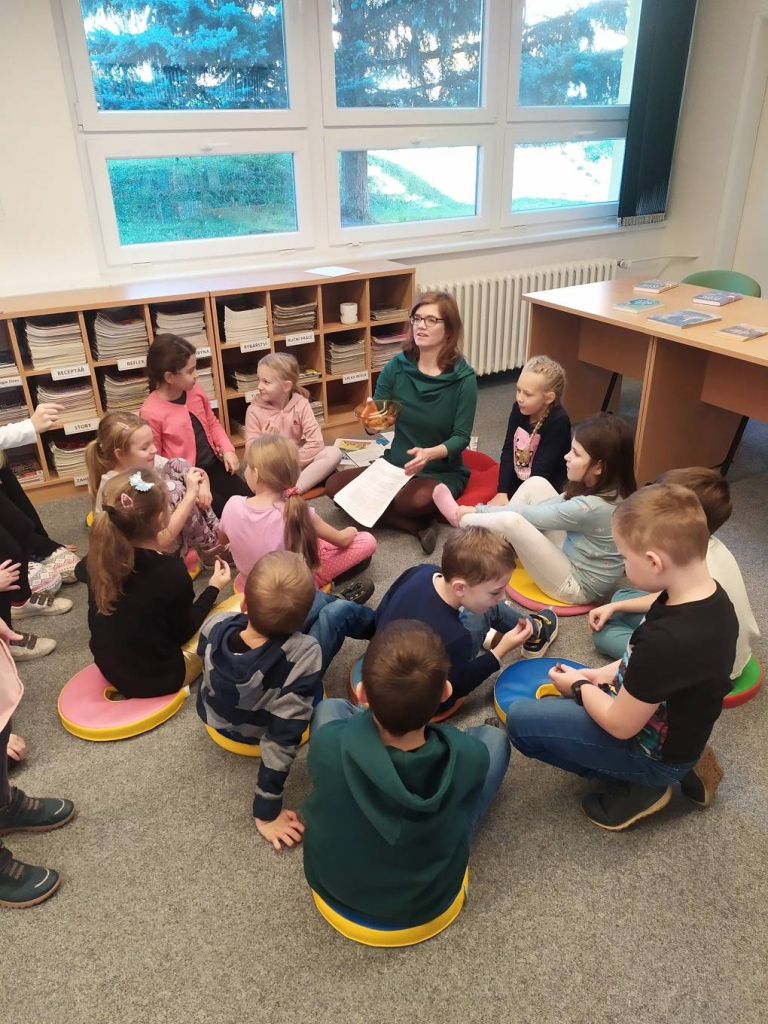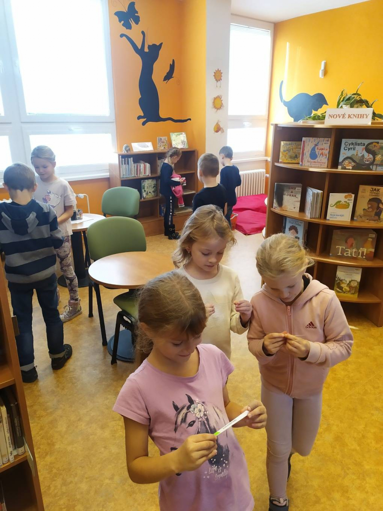 Dnes 16. 11. jsme s žáky zašli do knihovny v Ivančicích, kde pro nás knihovnice připravily hezký program o spisovateli Roaldu Dahlovi. Program začal povídáním o autorově životní cestě ke psaní knih. Děti přemýšlely, jaká kniha by je zaujala, kterou by si chtěly přečíst. Na motivy knihy Jirkova zázračná medicína děti v knihovně hledaly přísady do medicíny a snažily se vytvořit zázračný lektvar. Také se seznámily s ilustrátorem Dahlových knih. Jako ilustrátoři si vyzkoušely namalovat obra Dobra z jiné autorovy knihy. Nakonec si ještě vypůjčily knihy domů na čtení. Někdo jich nesl opravdu hodně a po návratu si každý nadšeně četl. Tak krásné knižní snění v příběhu.