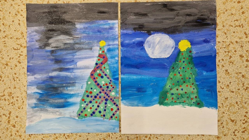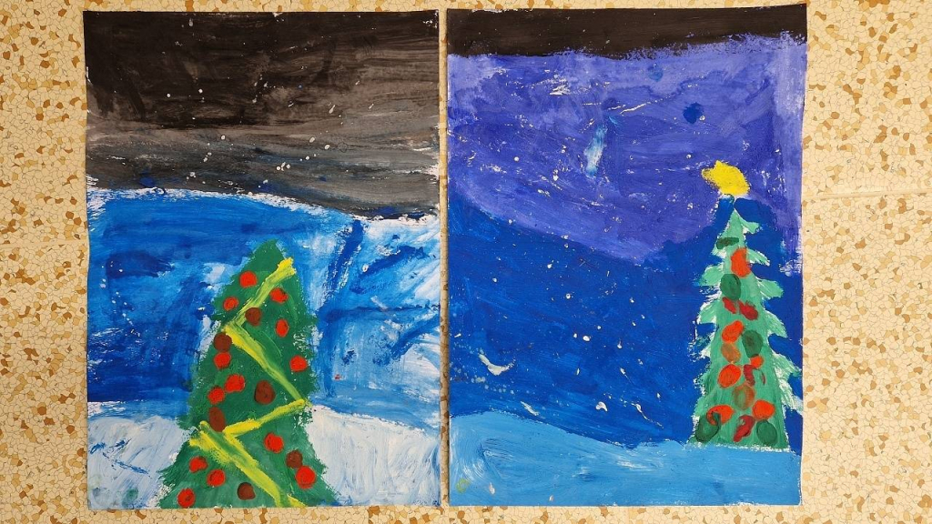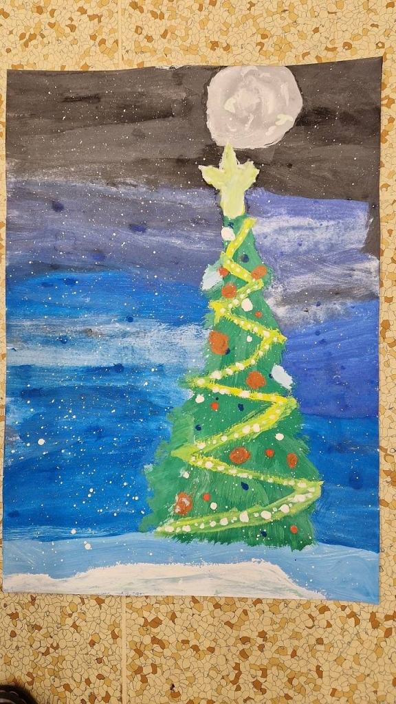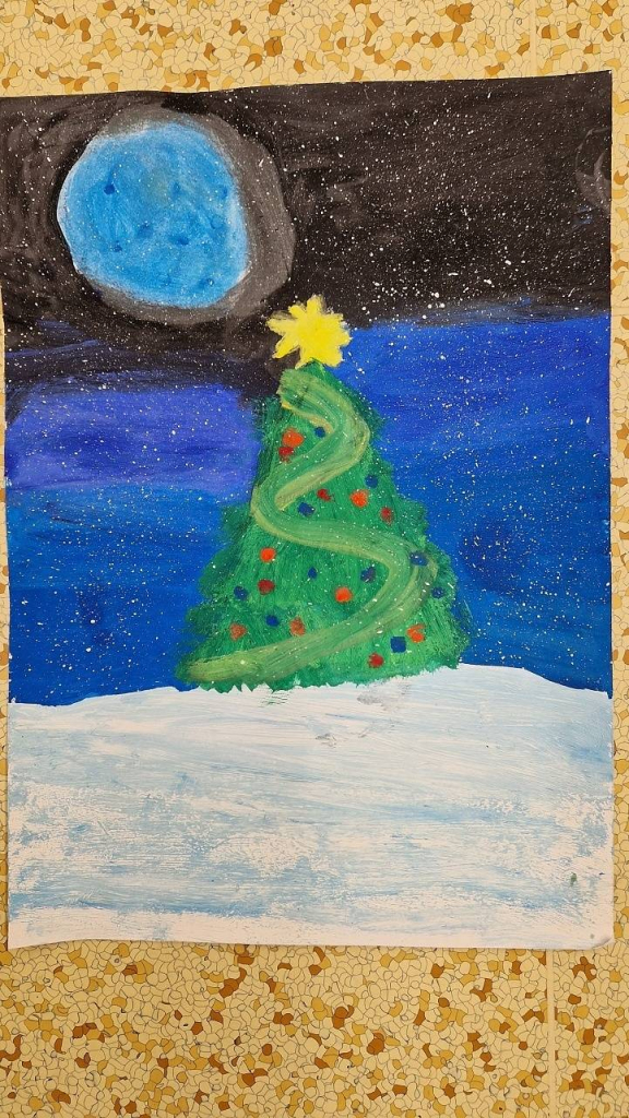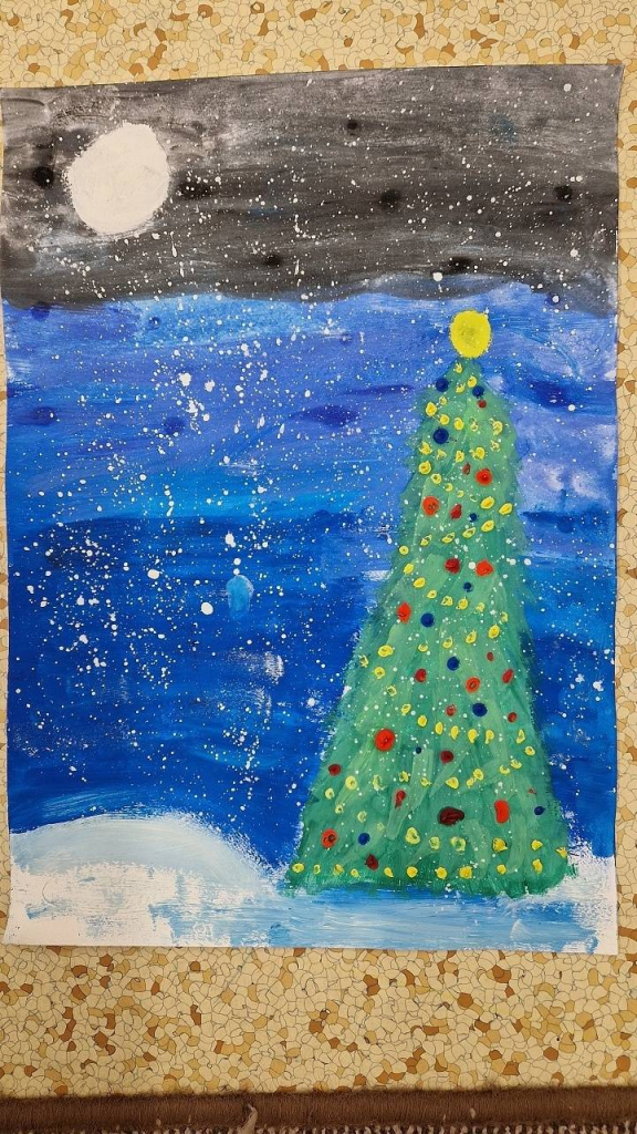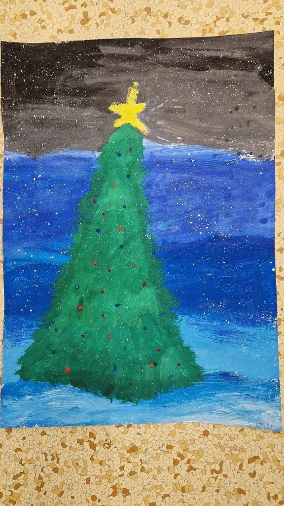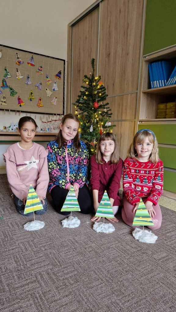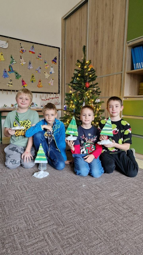 Rozzářený vánoční strom jsme také malovali ve výtvarné výchově a tvořili v pracovních činnostech. Ve třídě jsme ozdobili náš vánoční stromek, každý namaloval a pověsil vlastní ozdobu, kterou si před Vánocemi mohl vzít i na domácí vánoční stromek.