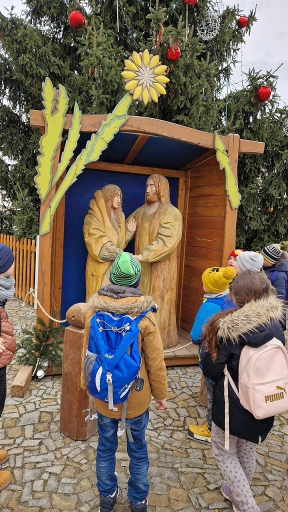 V předvánočním týdnu jsme si vyprávěli o vánočních zvycích a o narození Ježíška. Žáci druhého stupně pro nás v kině sehráli Živý betlém, moc se jim to povedlo. Při procházce po městě jsme zvonili na zvoneček, pozdravili ovečky u betléma na náměstí a podívali se na betlém v kostele.