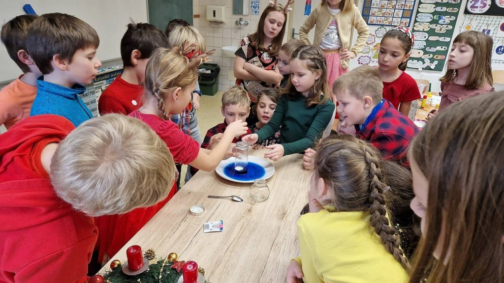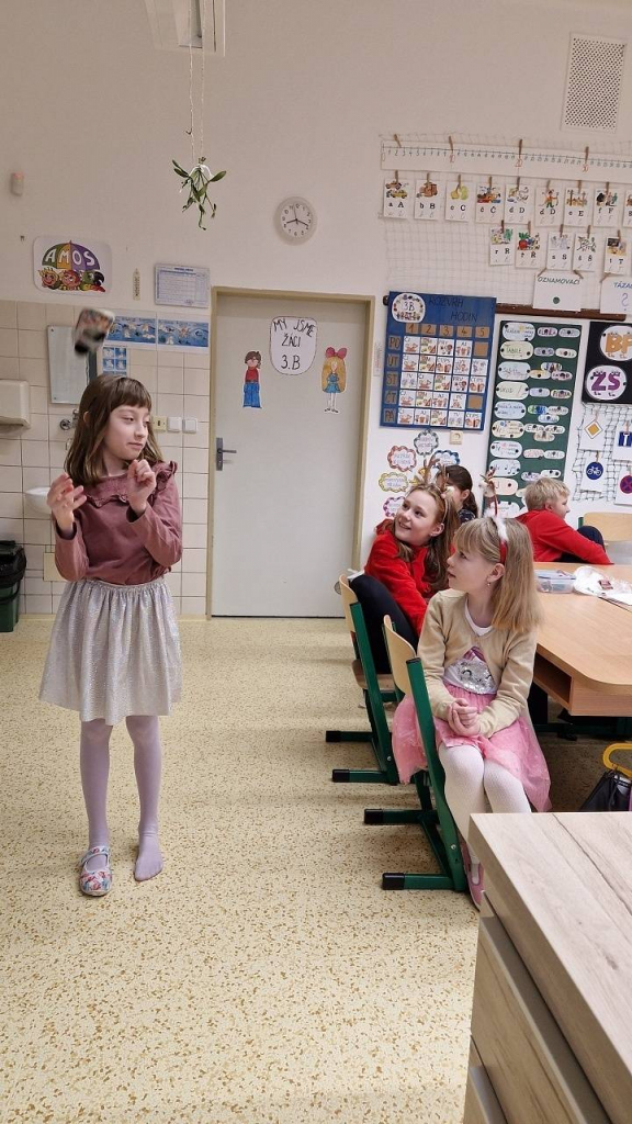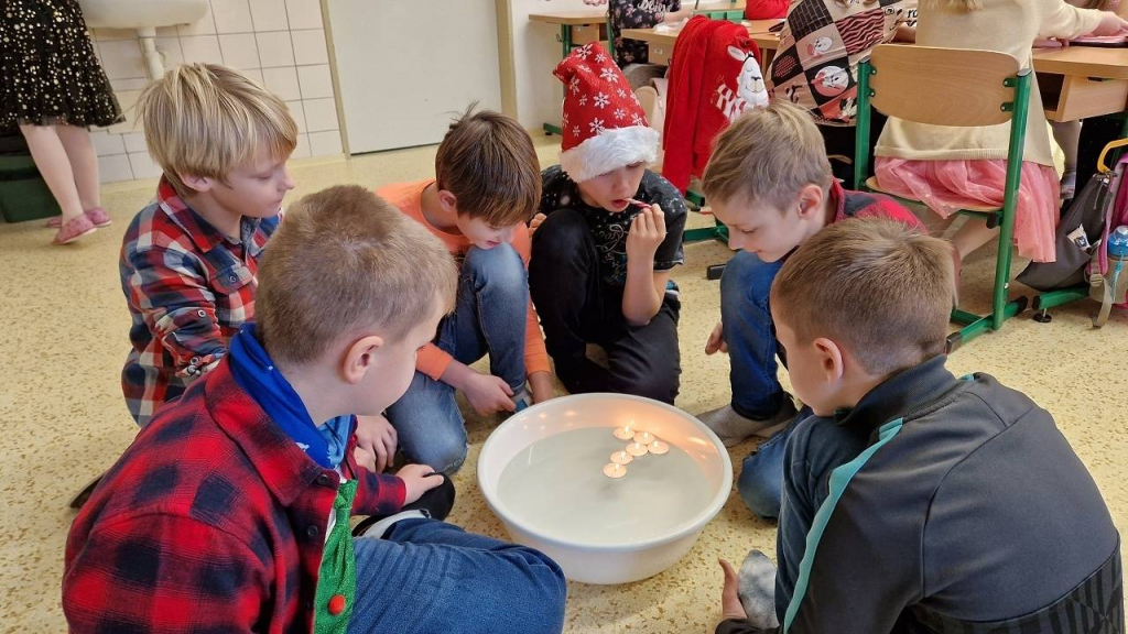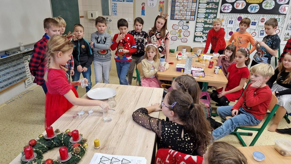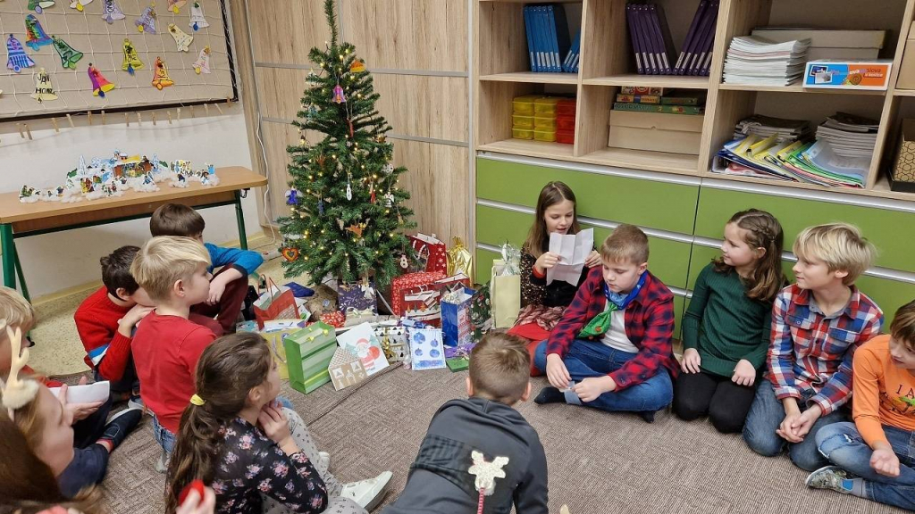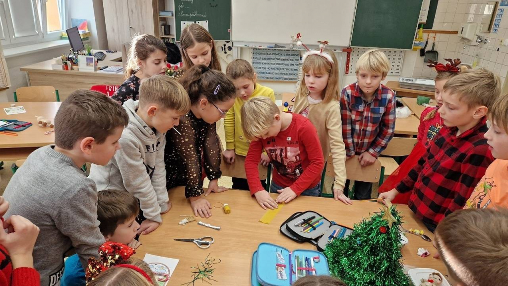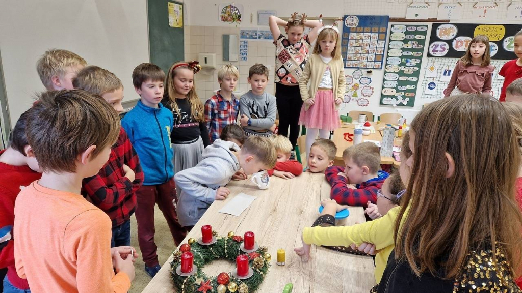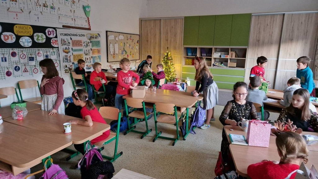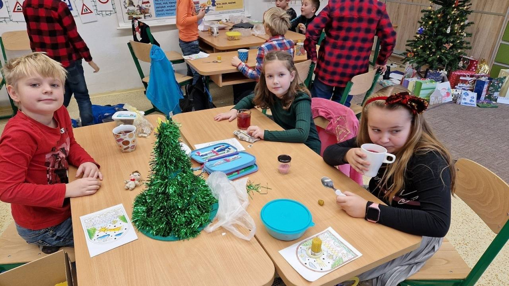 V pátek konečně dorazil den, kterého jsme se nemohli dočkat – třídní vánoční besídka. Házeli jsme pantoflem, pouštěli lodičky, obejmuli se pod jmelím, Tomášek pro všechny připravil výrobu svíčky z včelího vosku. Vše spolužákům vysvětlil a pak pomáhal s výrobou, aktivita byla báječná. Některé děti hrály na klavír, jiné přednesly básničku, zapívaly nebo vyprávěly hádanky a vtipy. Také jsme viděli 2 kouzelnice s kouzlem a několik pokusů. Děkuji všem, kteří připravili zábavu pro spolužáky a dali si se svou aktivitou práci. Po hostině s čajíkem a vánočním cukrovím přišla ta nejočekávanější chvíle. Sešli jsme se u stromečku a po koledách si rozdali dárky.