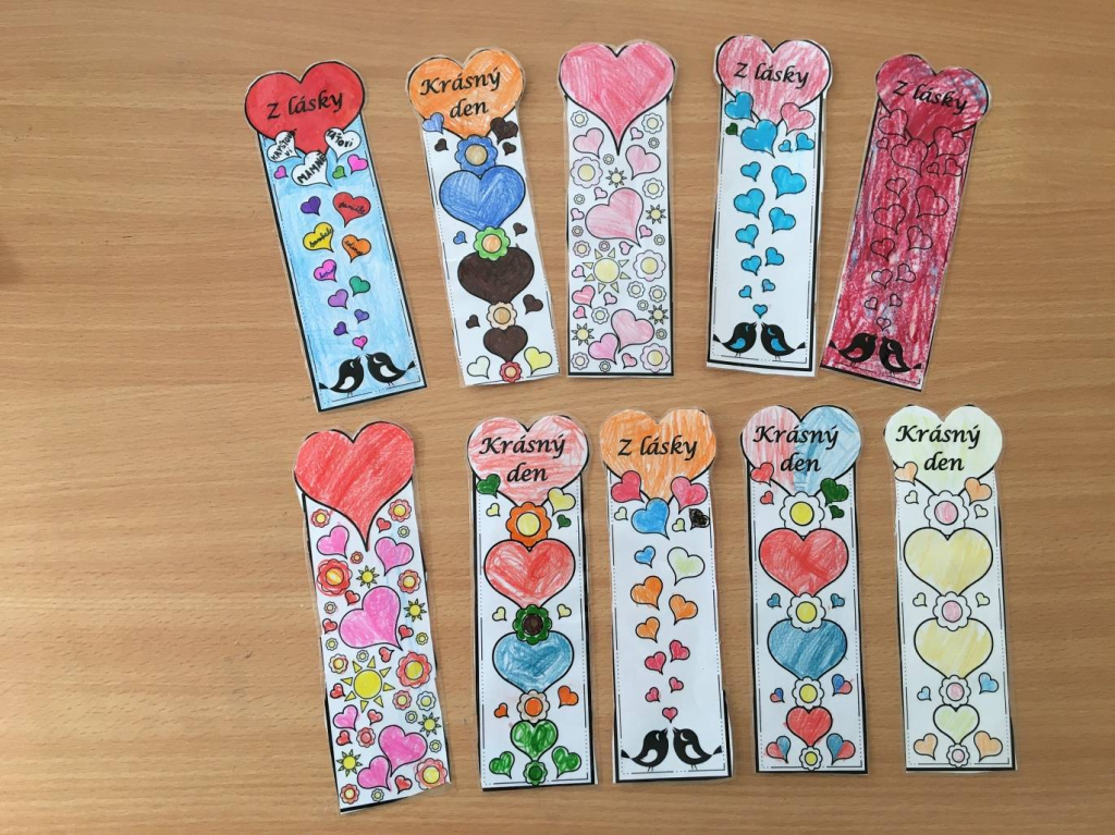 V měsící únor jsme se věnovali vyráběním přáníček k blížícímu se Valentýnu. Děti si kromě toho vyrobily i záložky na čtení.