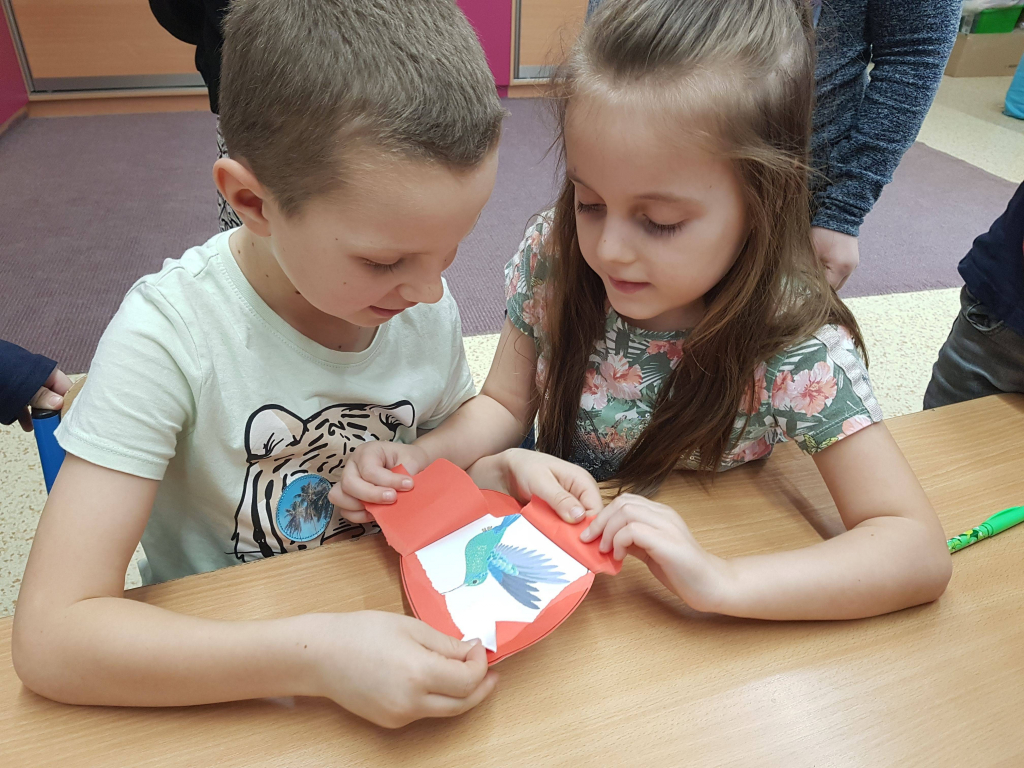 Nejzajímavější a nejnapínavější aktivitou pro děti byla vajíčka, která měla uvnitř schované obrázky. Děti s nadšením očekávaly, co si z vajíček „vyklubou“, šikovnými prstíčky odtrhly první vrstvu vajíčka a odkryl se jim pohled na zvířátko, které se líhne z vajíčka. Následným úkolem bylo uhodnout a po přečtení přiřadit vajíčko s indicií a zajímavostí k vylíhlým živočichům.