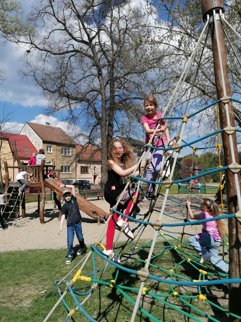 Na konci procházky děti dostaly poslední úkoly, které společně plnily a luštily indicie, které je postupně dovedly až k pokladu. Radost a nadšení bylo obrovské ve chvíli, kdy se jim poklad podařilo najít. Zasloužená odměna je neminula. Krásným zakončením celé procházky byla návštěva dětského hřiště, kde si děti krásně vyhrály. Využily herní prvky, běhaly, houpaly se a společně trávily čas venku.